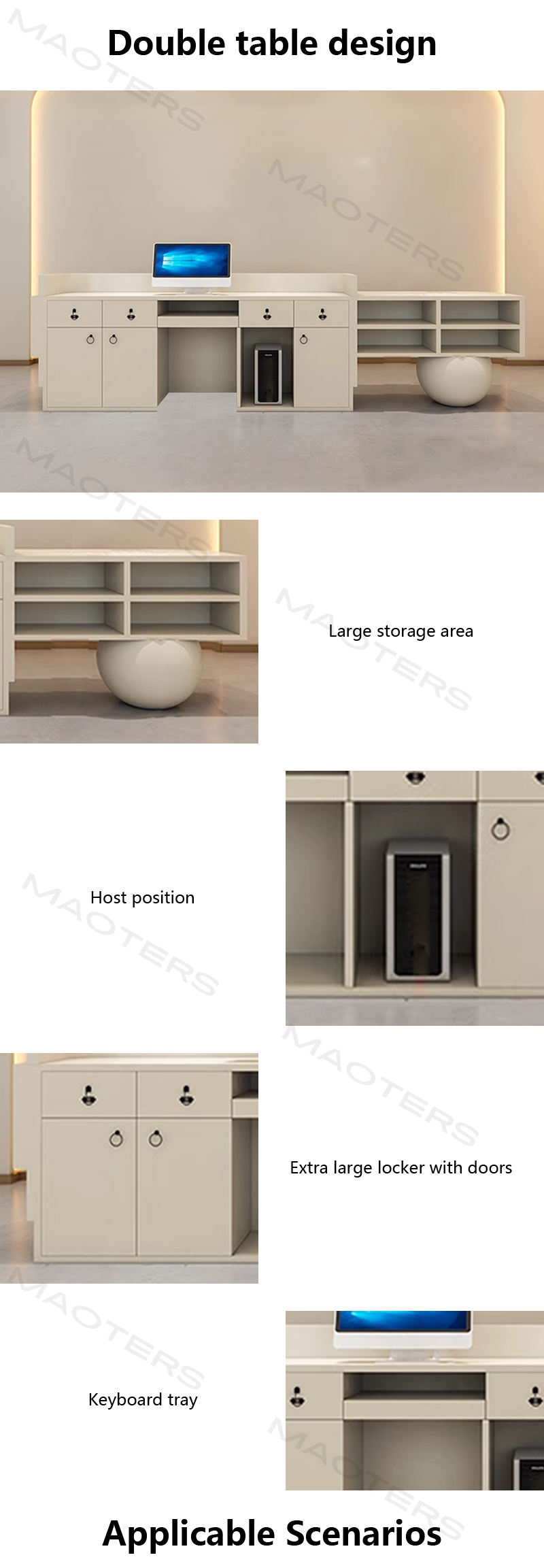 This Modern Lacquer Reception Desk looks stunning in my boutique!The large storage cabinet is perfect for holding all my files and supplies.The design is elegant,and the customer service team was so patient and helpful throughout the entire process.The desk arrived quickly and in perfect condition.