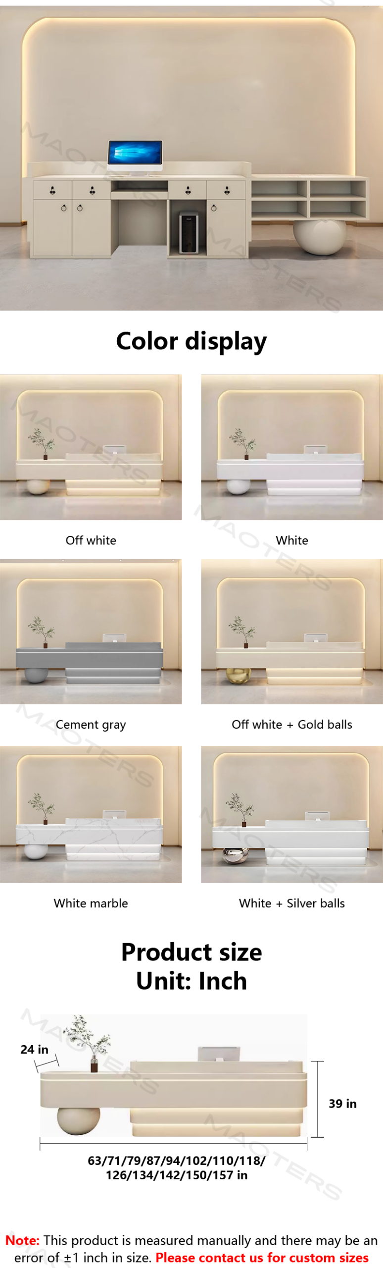 This reception desk is not only stylish but incredibly practical.The large storage space is a huge bonus, especially the oversized cabinet with doors.I can now store everything I need without cluttering the reception area.The customer service team was fantastic-super friendly and quick to respond.Shipping was also fast!