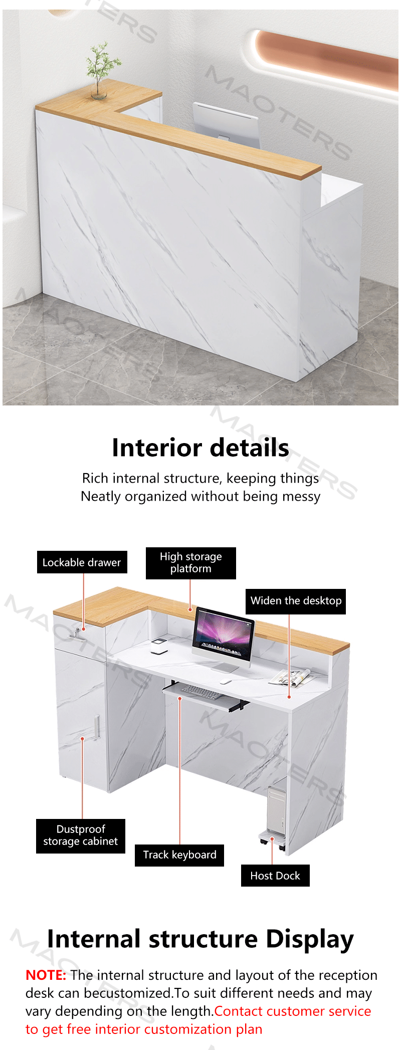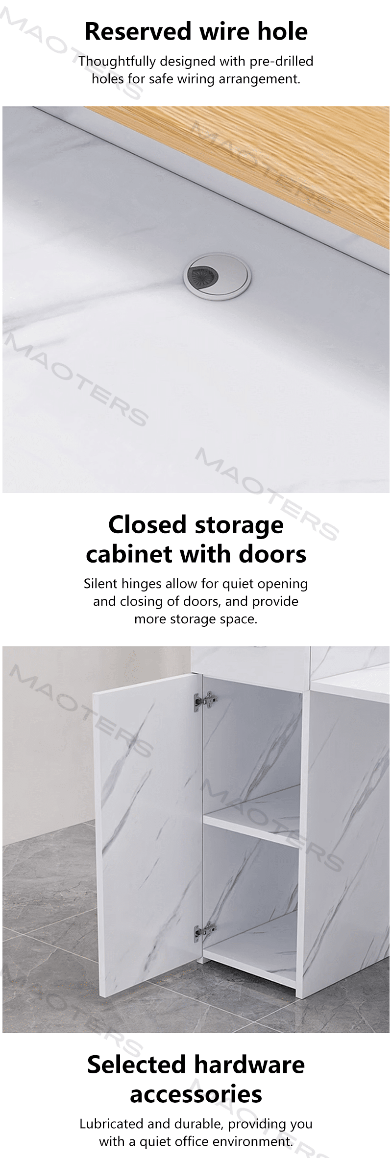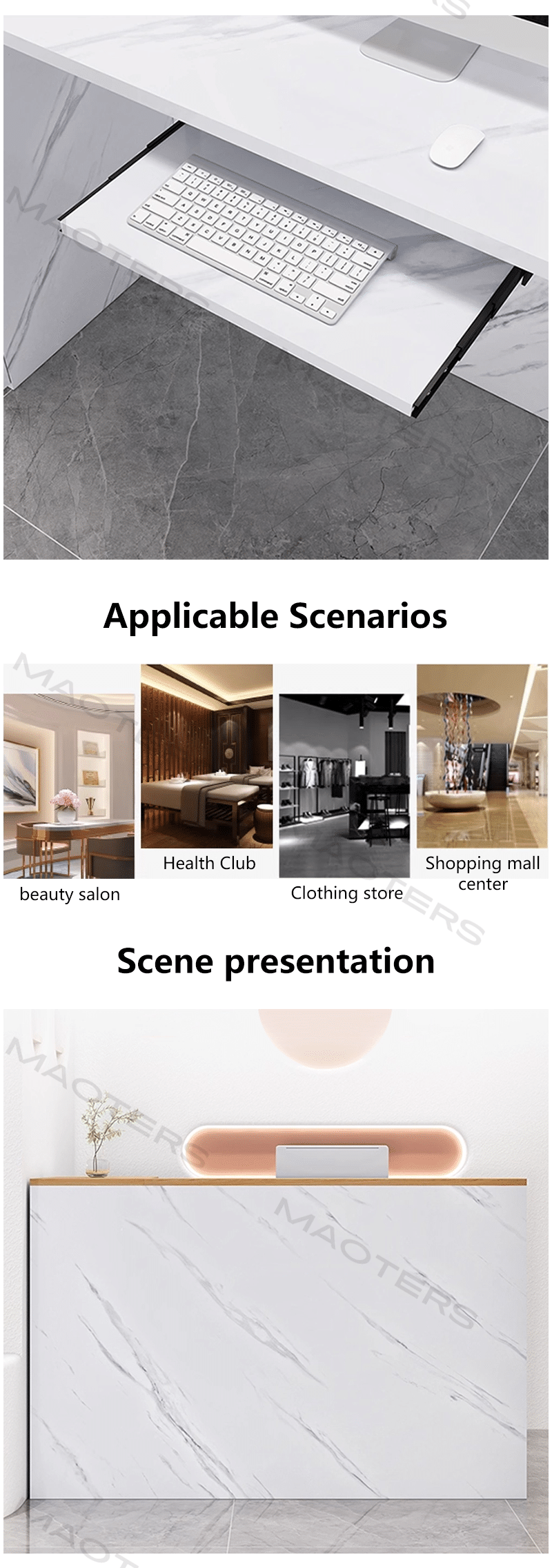 Smart Function Integration: Beneath its minimalist exterior lies hidden functionality. Seamlessly integrated cable management, concealed storage drawers, and open shelves easily store POS machines, packaging supplies, tablets, and promotional materials, keeping the countertop always tidy.