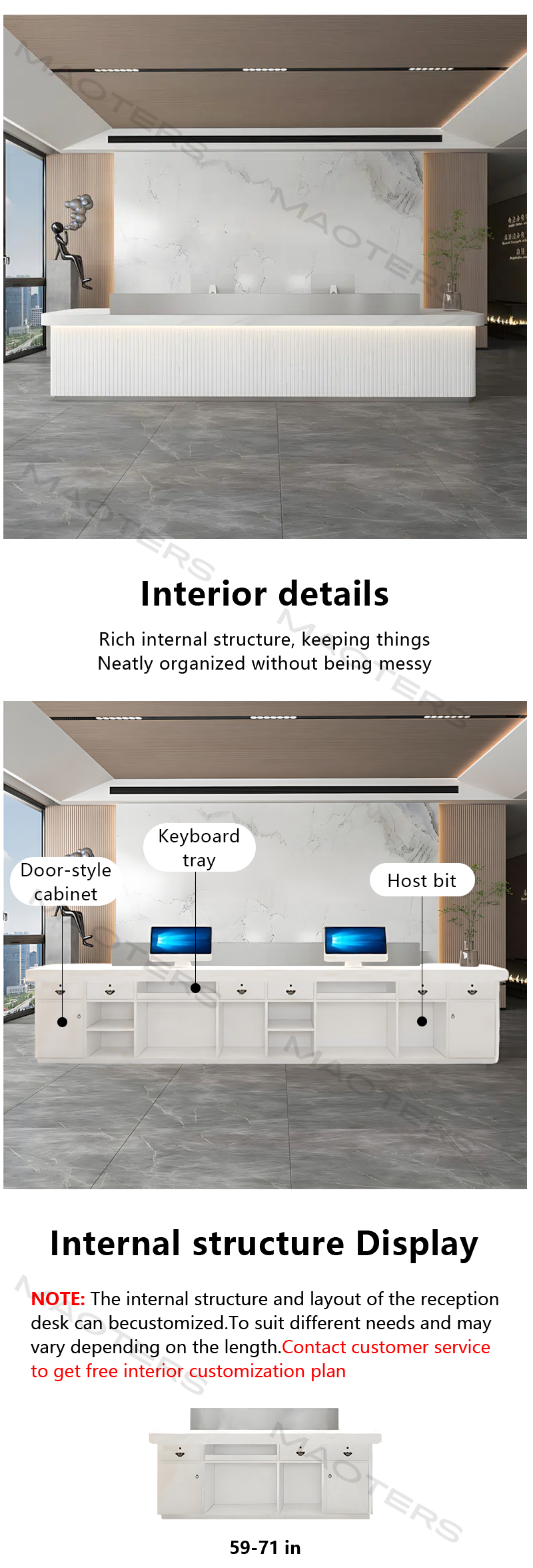 - Minimalist & Modern Design – A sleek, contemporary front desk that brings a clean, professional look to your hotel or business reception area.
