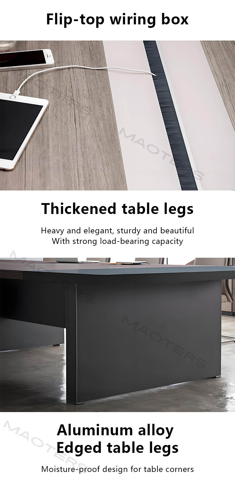 Pure contours, seamless integration: Abandoning redundant ornamentation, it adopts refined geometric shapes. The desktop edges are precisely millimeter-polished, presenting either soft rounded corners or sharp right angles, combined with a concealed, seamless splicing process to showcase a unified aesthetic.