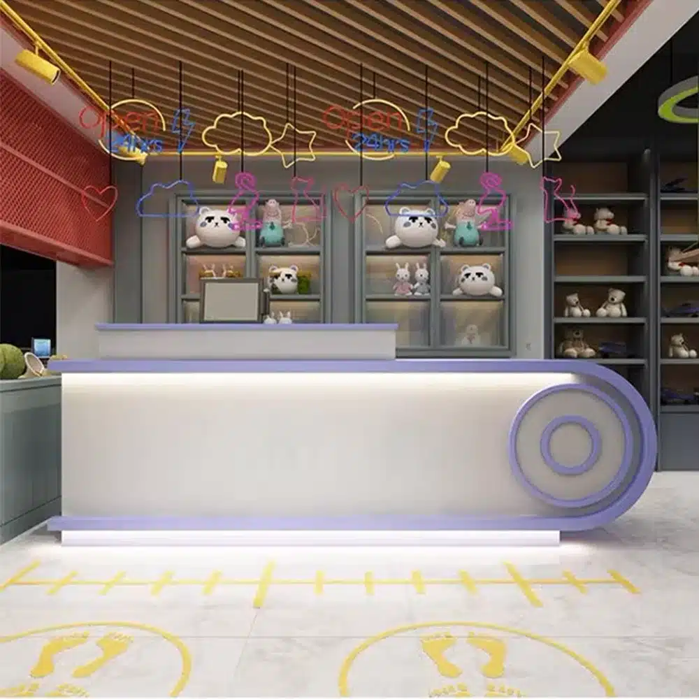 The Modern Minimalist Curved Counter is designed to bring a sleek, contemporary feel to any space. With its graceful, curved lines and minimalist design, this counter is perfect for modern offices, salons, reception areas, and retail environments. Crafted from high-quality materials, it offers both durability and a smooth, easy-to-clean surface, ensuring a long-lasting addition to your business. The open design and spacious surface make it ideal for customer interactions and organizational needs. Fully customizable in size, color, and material, this counter can be tailored to fit your space and branding perfectly.