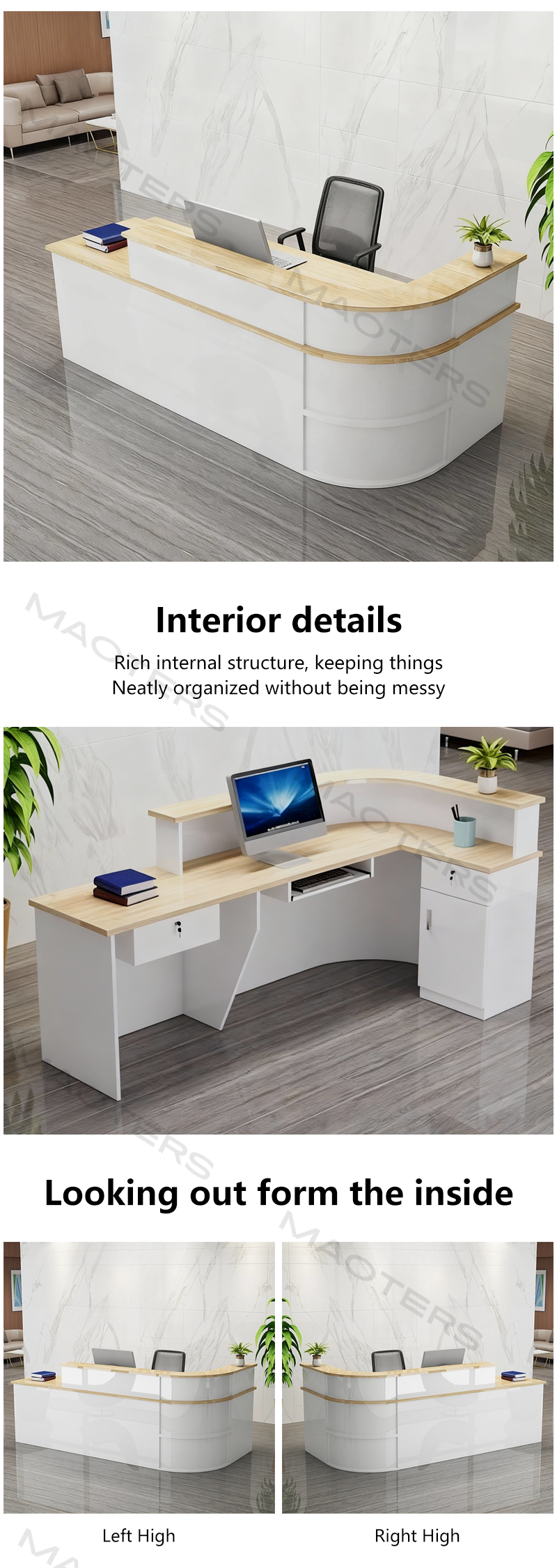 Designed for dynamic retail environments, this Curved Modern Front Desk combines aesthetic appeal with functional efficiency. Its sleek, curved design creates an inviting and accessible space for customer interactions, maximizing both flow and visibility in busy stores and shops.