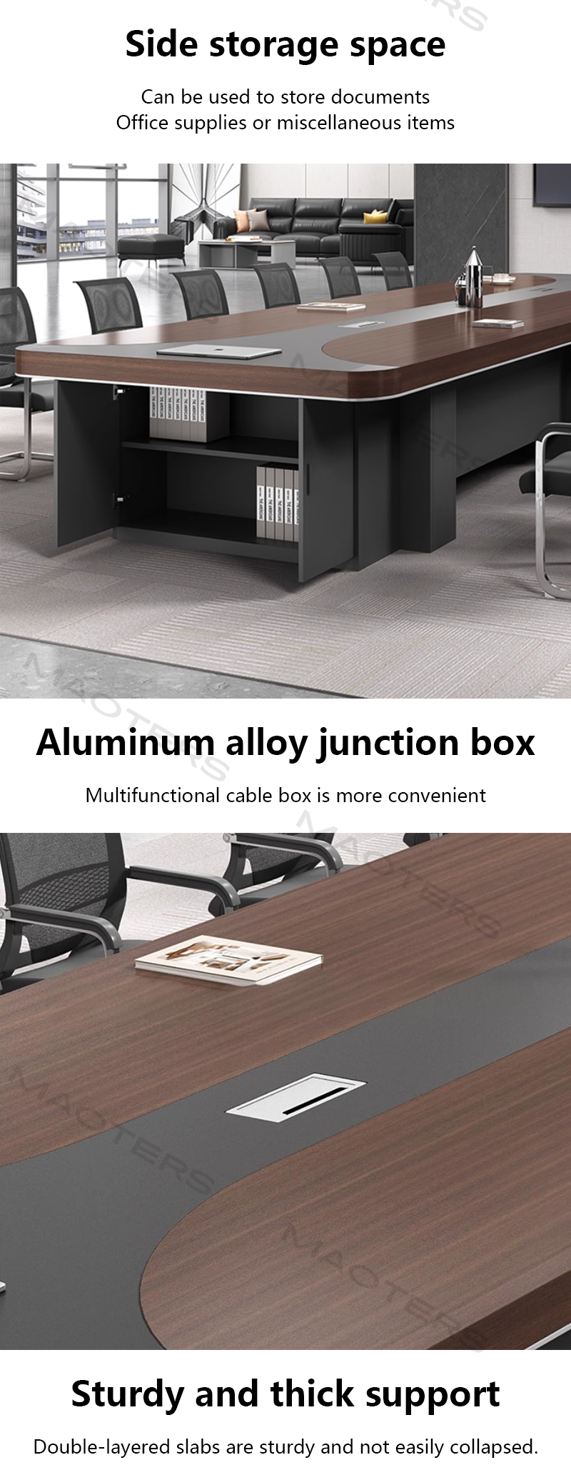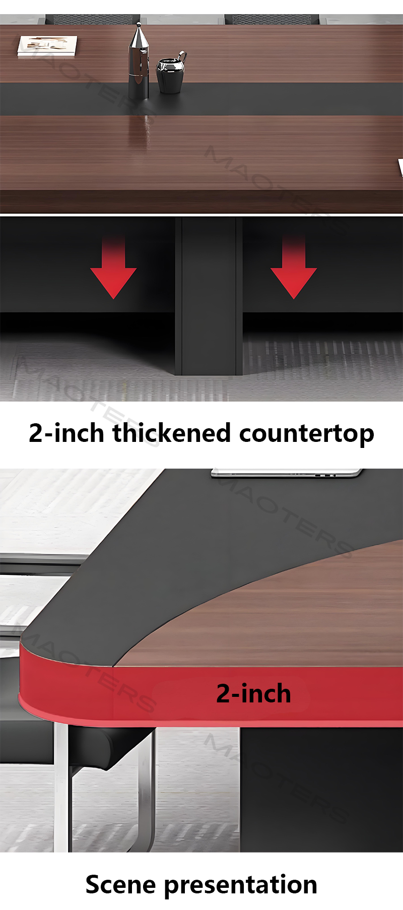 A Suspended Lightness Philosophy: Utilizing ultra-thin, inward-curving legs or a continuous central base beam design, visual obstruction is minimized. From any angle, the extra-long tabletop appears elegantly suspended in the space, giving the meeting room a sense of openness and breathability.