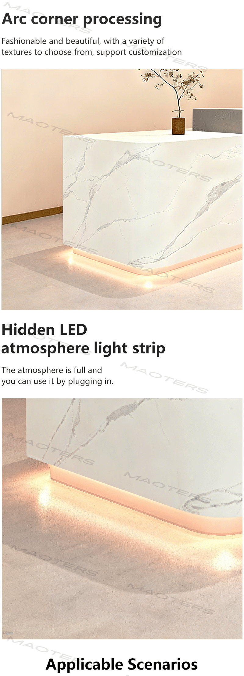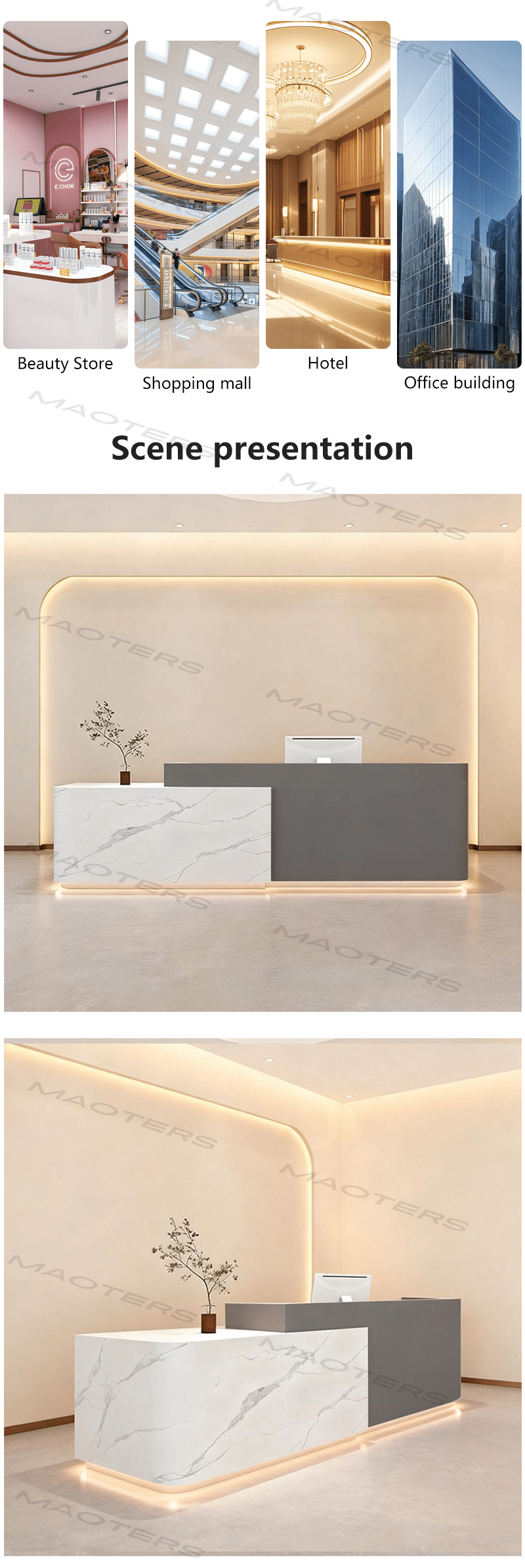 Our meticulously crafted modern, minimalist reception and checkout counter is more than just a functional element; it’s a silent statement of your space’s character. We’ve eliminated superfluous ornamentation and complex lines, returning to the essence of materials, light, and function, creating an efficient, tranquil, and luxurious first impression.