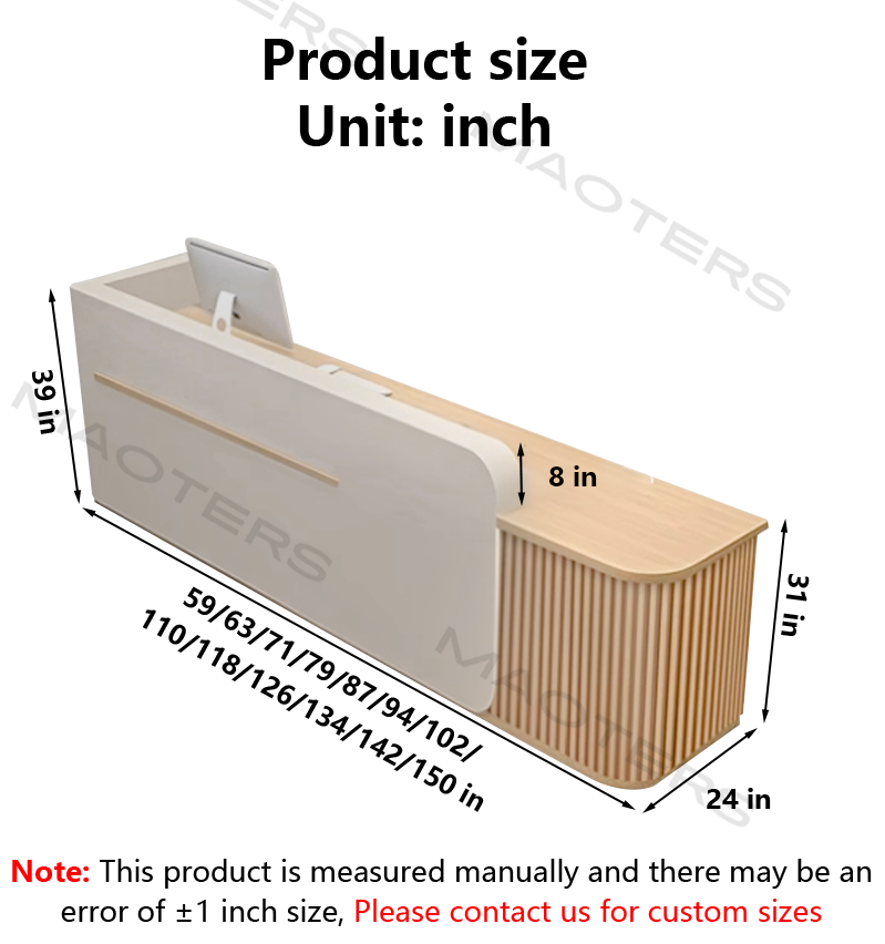 The reception desk looks great and is the perfect size for my space.It's sturdy and definitely great value for money.The size is just right,providing ample workspace without taking up too much room.