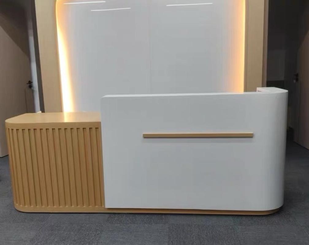 Beyond its beauty, this reception desk is intelligently functional. Discreet built-in storage, hidden compartments, and integrated cable management maintain the minimalist appeal while supporting effortless daily operations. The spacious counter offers ample room for client check-ins, consultations, and display, all while maintaining an aura of order and peace.
