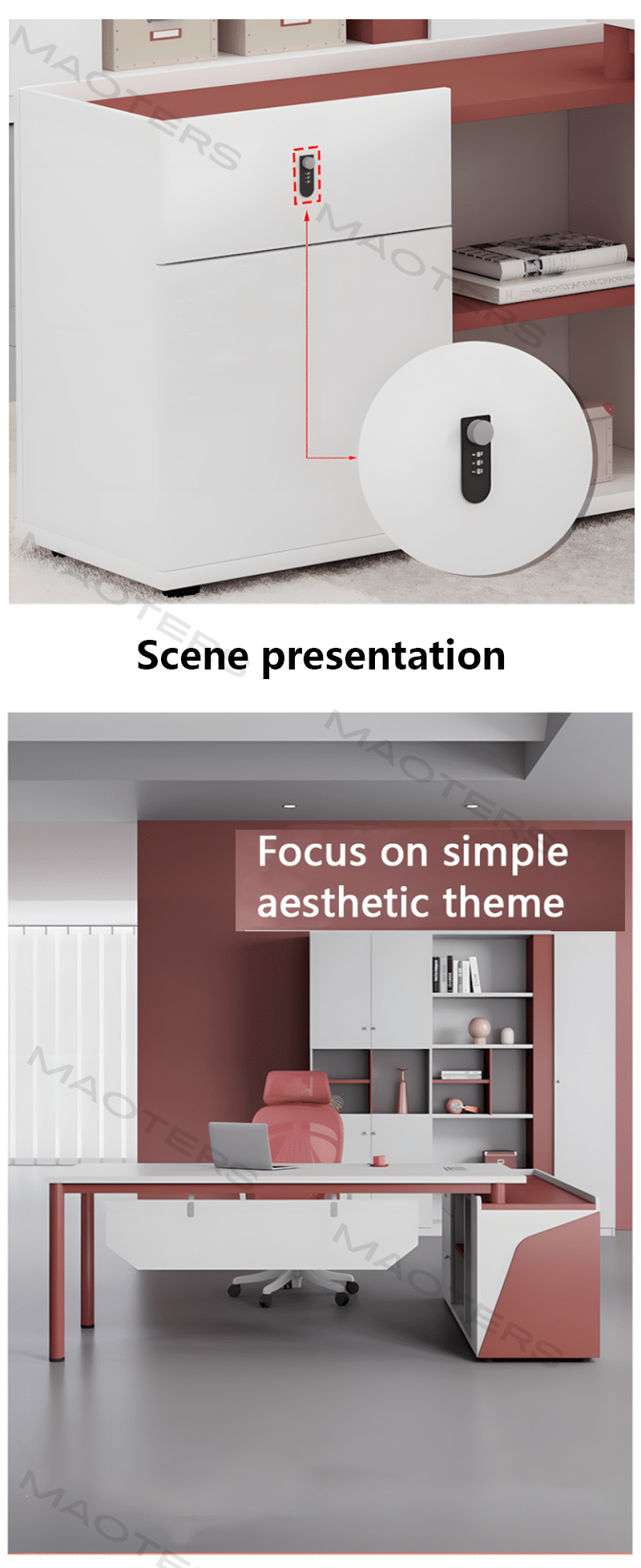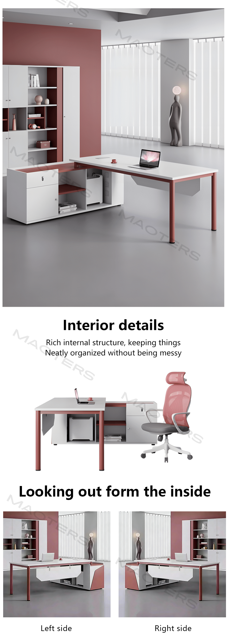 Ideal for executives, creative professionals, or design enthusiasts who want to infuse energy into their office, the Maoters Red Executive Desk is more than just furniture—it’s a statement of ambition and individuality.