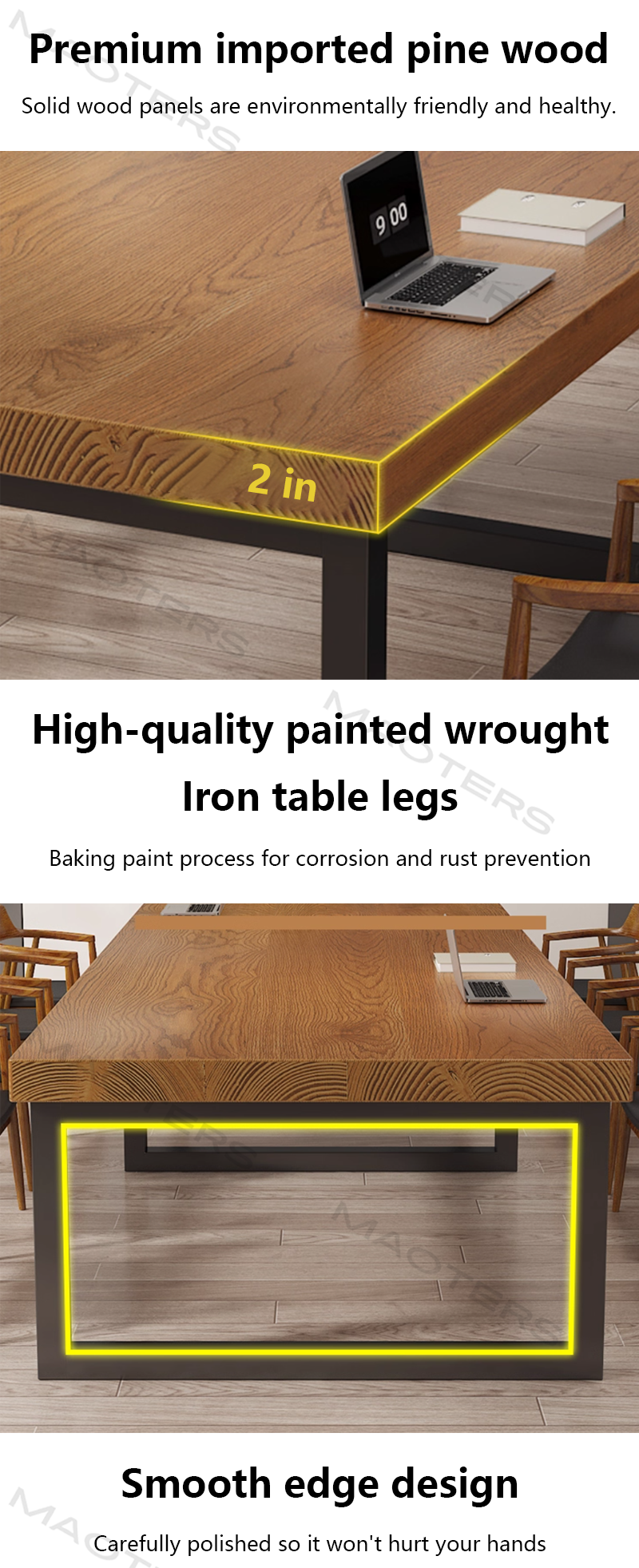 Natural Texture, Time’s Mark: Carefully selected high-quality natural solid wood, each tabletop possesses a unique growth texture and warm touch. The inherent beauty of the wood becomes the most profound decoration, lifting the space from coldness and radiating a calm and inclusive energy.