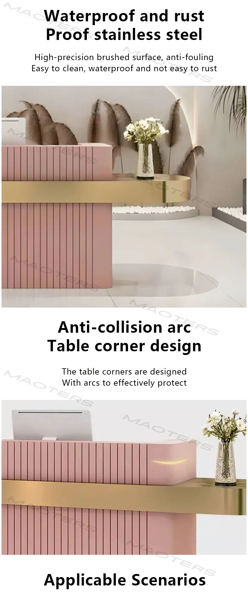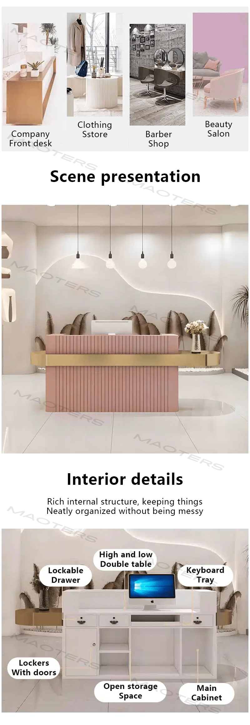 ✓ Creates a High-End Vibe – Elevates your business’s professionalism and style. ✓ Optimized for Customer Interaction – Comfortable height for seamless check-ins and consultations. ✓ Durable & Easy to Maintain – Scratch- and stain-resistant materials for long-lasting beauty.