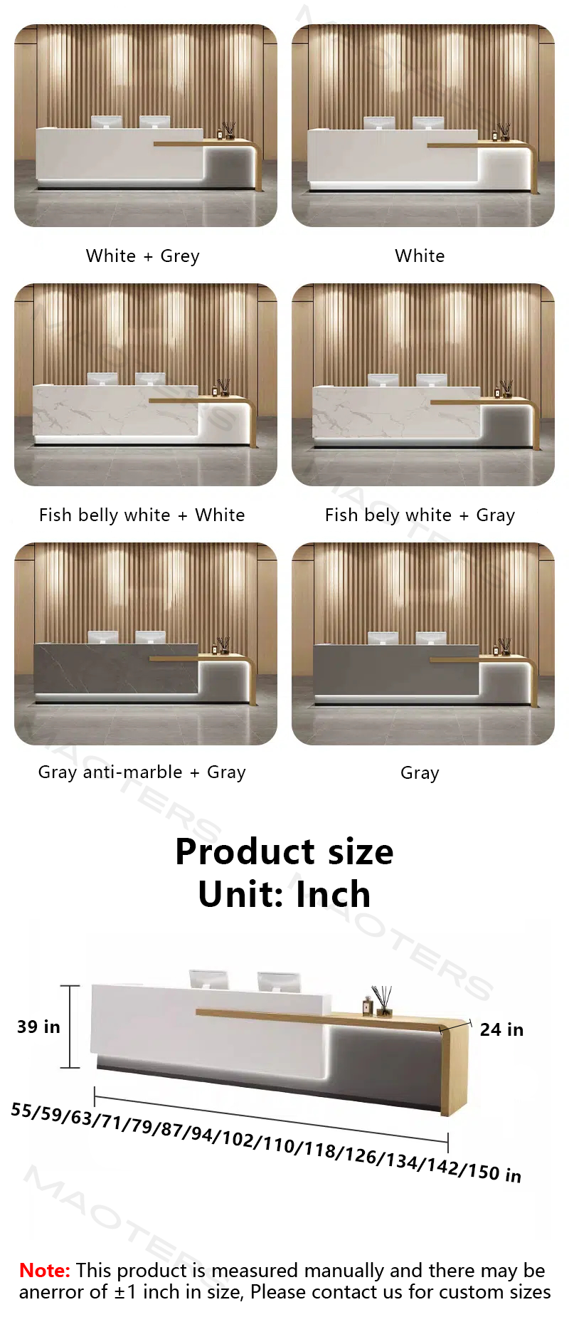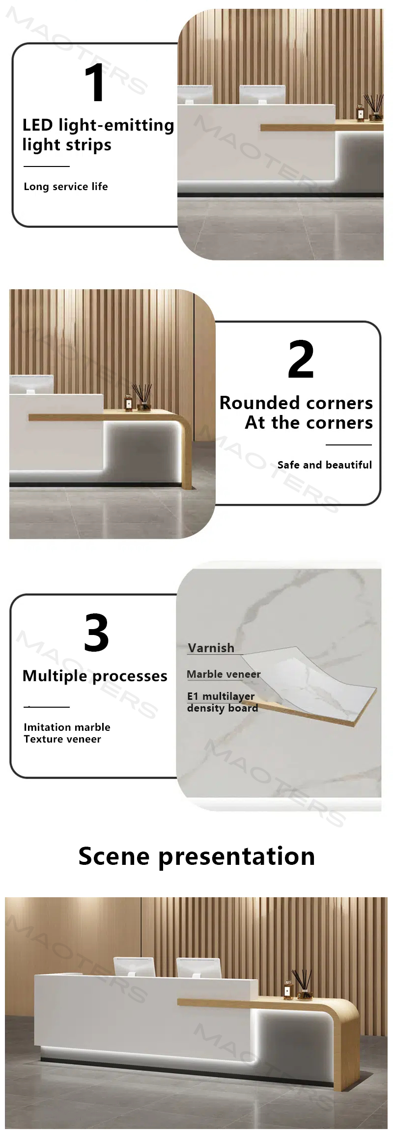 I'm extremely satisfied with this reception desk;it matches the product description perfectly.It's perfect for the reception area of ??my small studio,instantly making the space look neater and more organized.The desktop is smooth and odorless,and even if there was a slight smell,it dissipated quickly.The storage space is larger than it appeared online,making it great for storing small items.Excellent value for money.