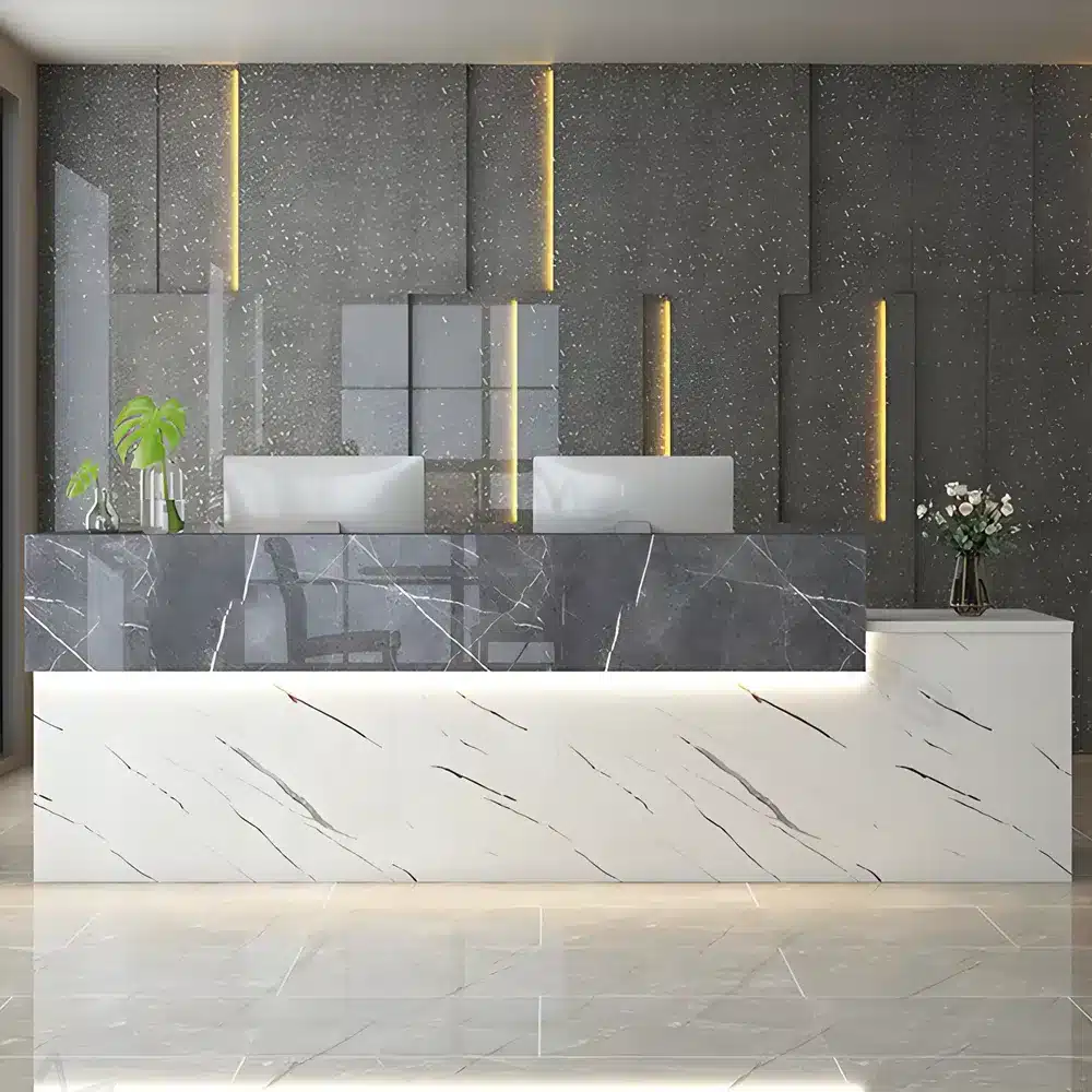 We upgraded from a basic table to this reception counter and it was totally worth it. It makes the space look more professional and welcoming.
