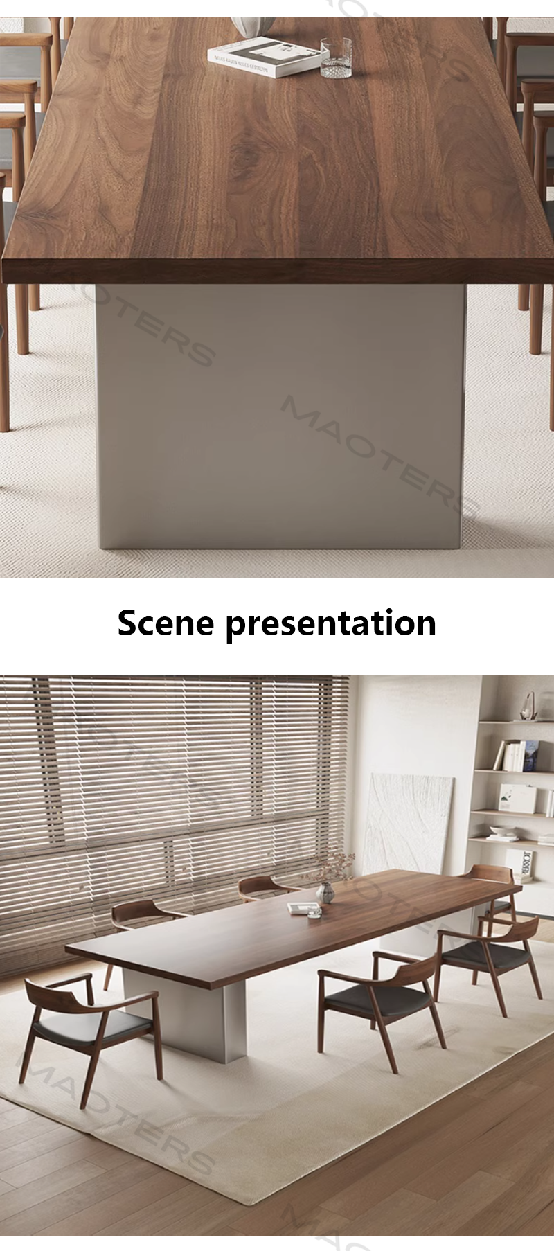 Born for Efficiency, Created for Quality: The modern walnut-colored solid wood conference table transcends mere functionality, serving as a reliable partner for connecting teams, inspiring creativity, and achieving excellence.