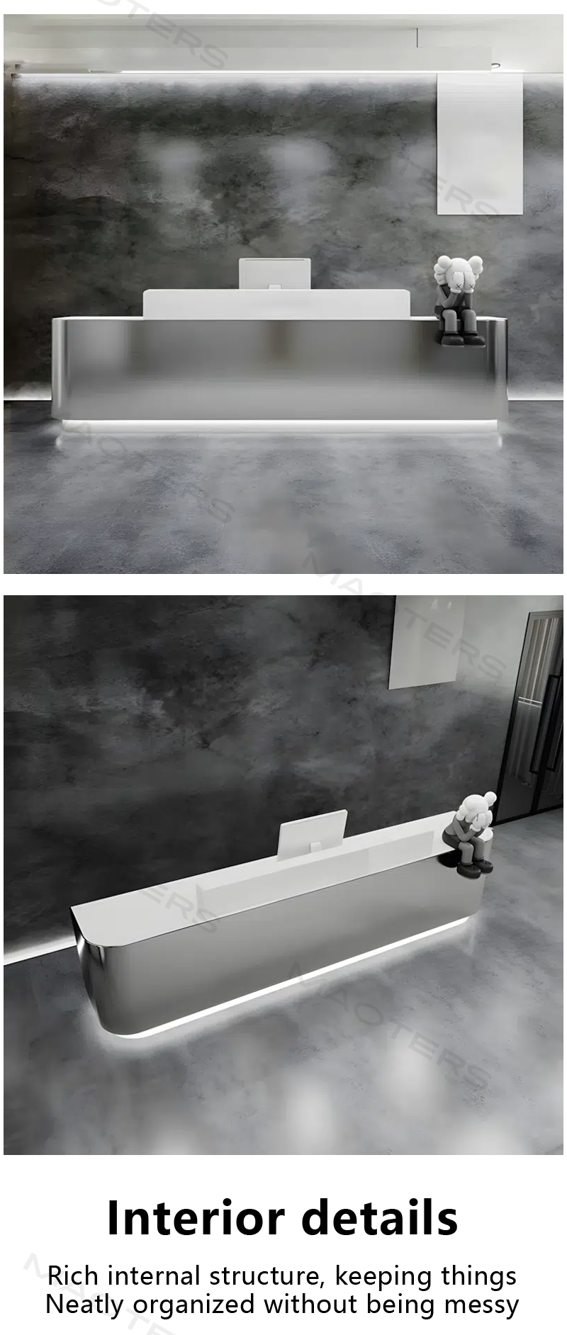 The Modern Stainless Steel Front Desk combines sleek design with superior durability, making it the perfect addition to any office, hotel, or commercial space. Crafted from high-quality stainless steel, this desk offers a contemporary, polished look while providing a sturdy and long-lasting solution for your reception area. Its minimalist design creates an inviting yet professional environment for guests and clients. The smooth, easy-to-maintain surface ensures that it will continue to look pristine, even in high-traffic areas. Customizable in size, color, and material, this front desk can be tailored to suit your specific space and aesthetic.