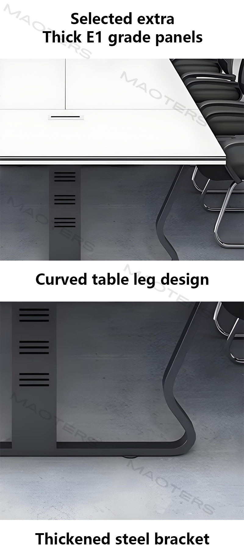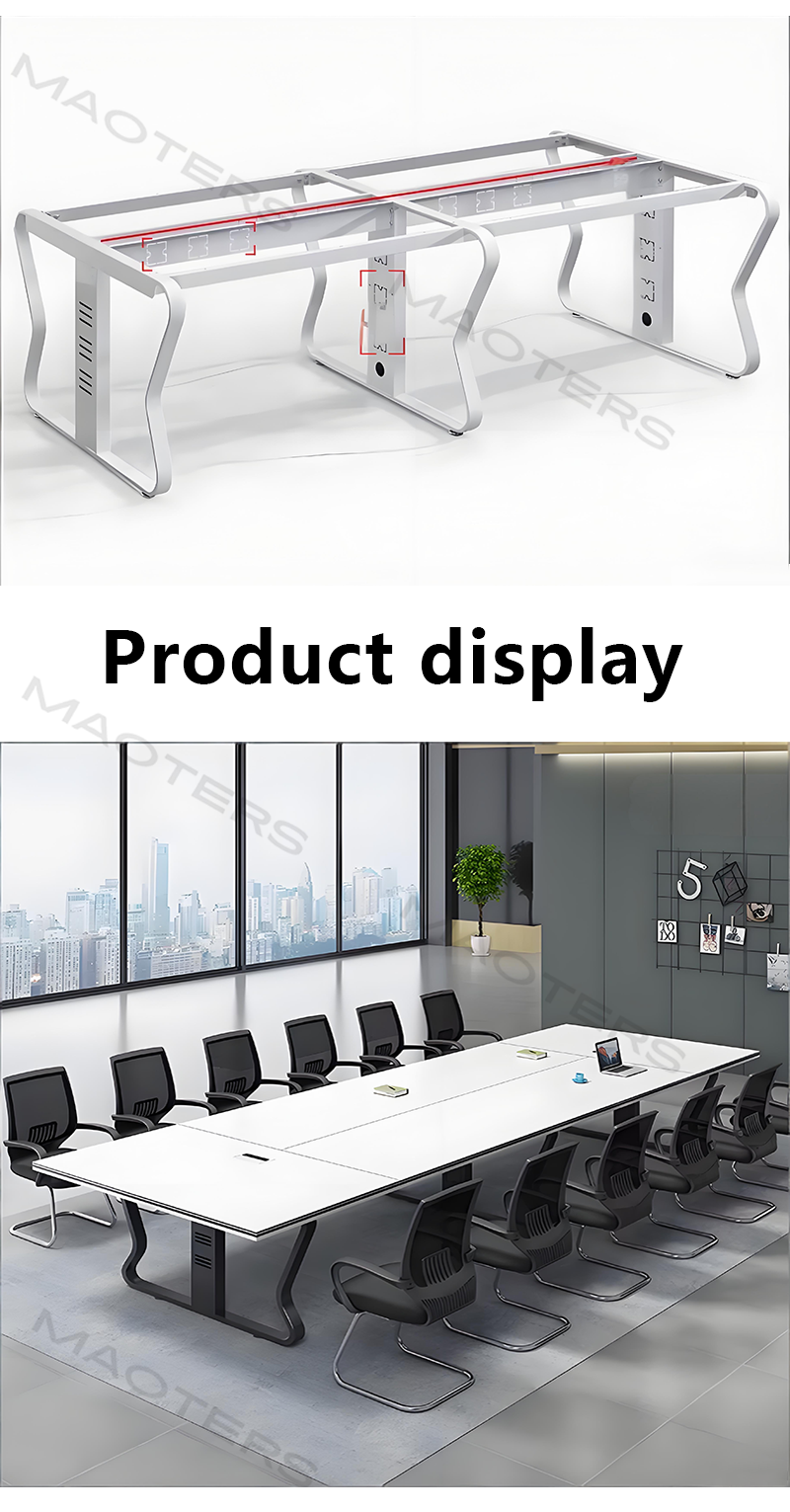 This multifunctional minimalist conference table is a culmination of modern office design, perfectly blending clean aesthetics with practical technological innovation. Its streamlined silhouette and understated color scheme seamlessly integrate into any contemporary office space, creating a focused and efficient meeting atmosphere.