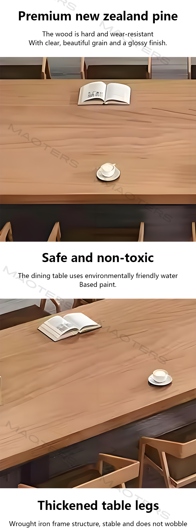 Natural Material Dialogue: Carefully selected premium natural solid woods (such as oak, ash, or walnut) give each tabletop a unique wood grain and warm touch, infusing modern spaces with natural vitality.