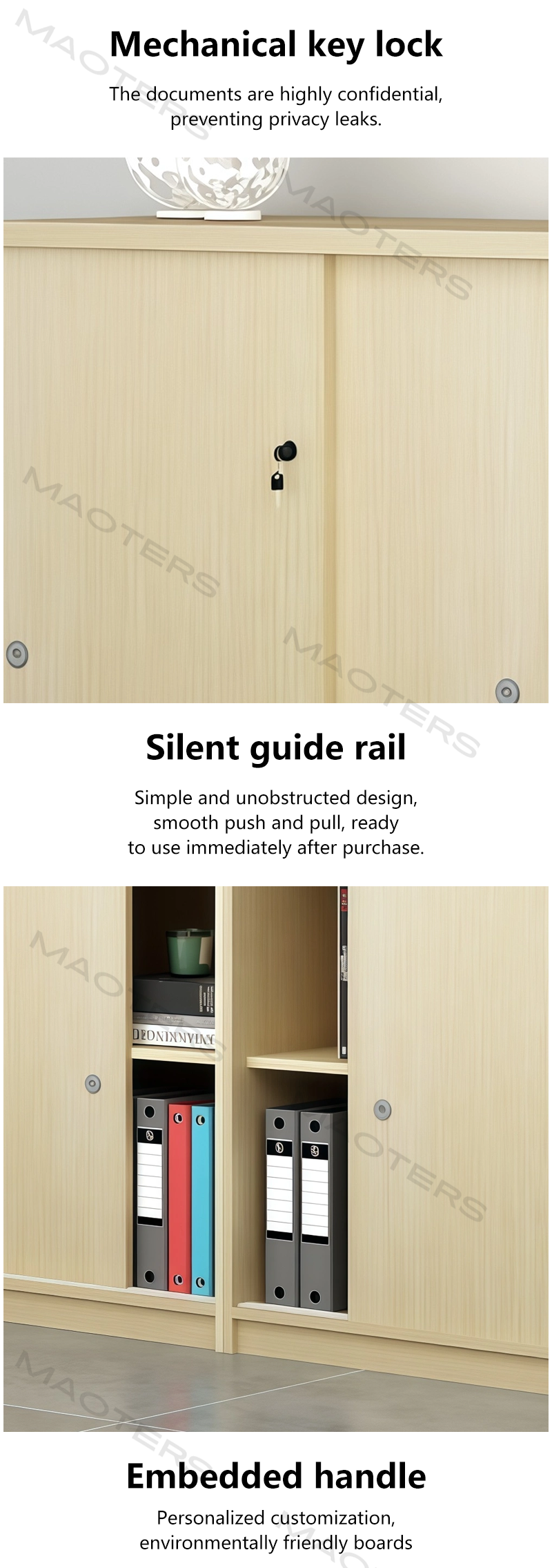 This multi-functional low-profile office file storage cabinet is designed specifically for the dual needs of modern office spaces: convenient access and space integration. Its low-profile structure cleverly combines high-capacity file storage with flexible desktop extension space, providing an efficient and readily accessible storage solution while maintaining a sense of spaciousness.