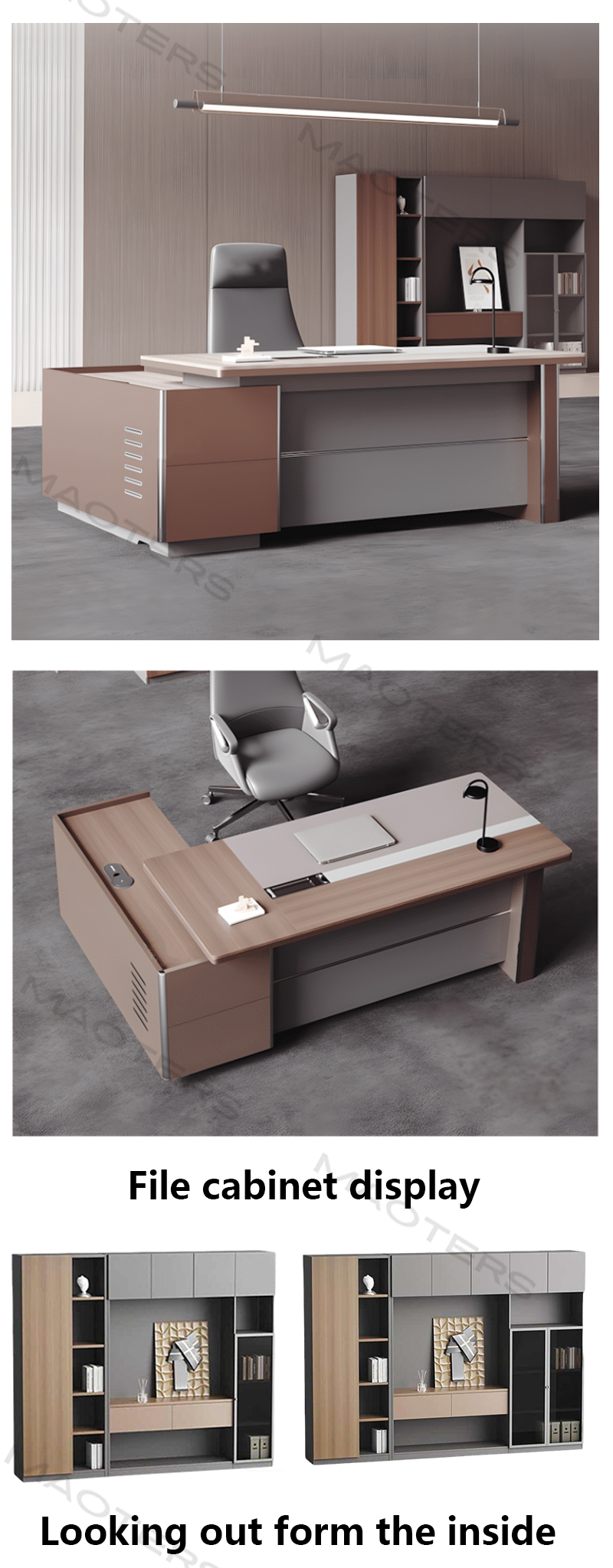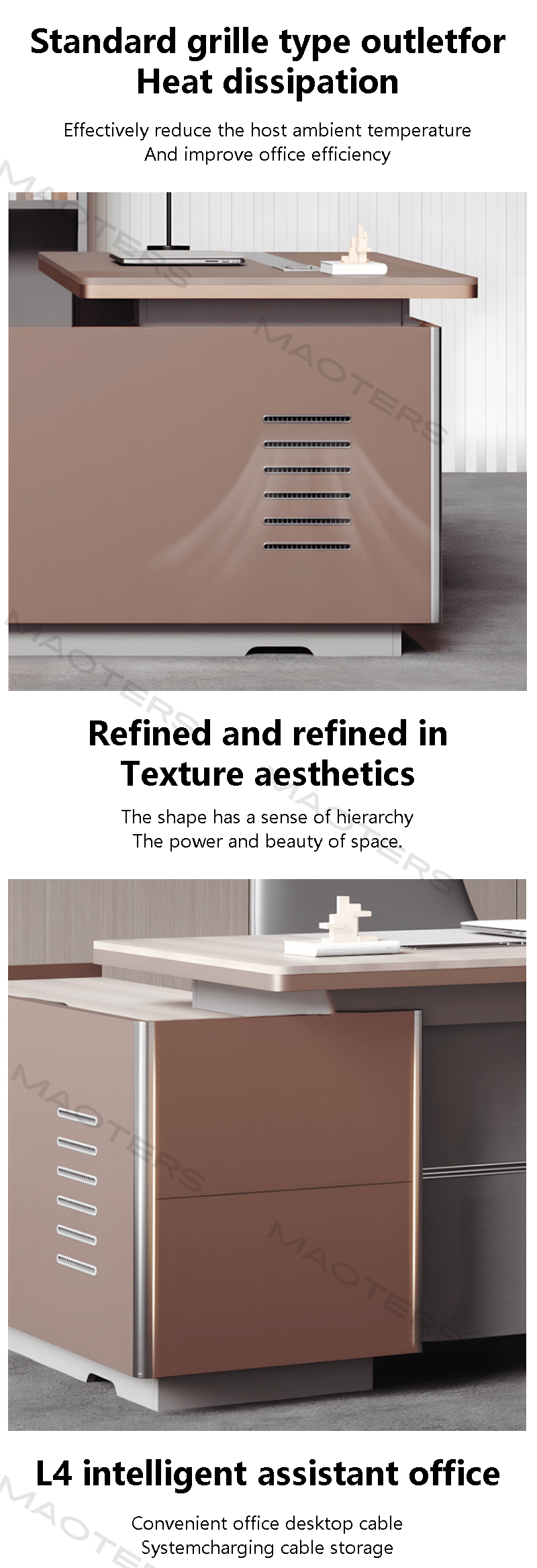 This simple and modern presidential desk is designed for workplace elites who pursue efficiency and taste. It combines modern aesthetics with practical functions to create a calm and atmospheric office experience.
