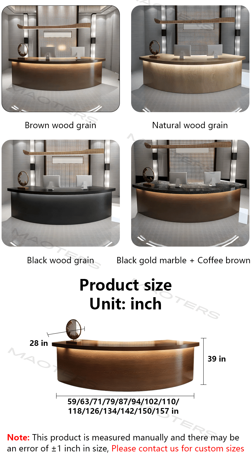 - Elegant Solid Wood Grain – Featuring a rich, natural wood grain finish that adds warmth and sophistication to any reception area, creating a welcoming atmosphere.