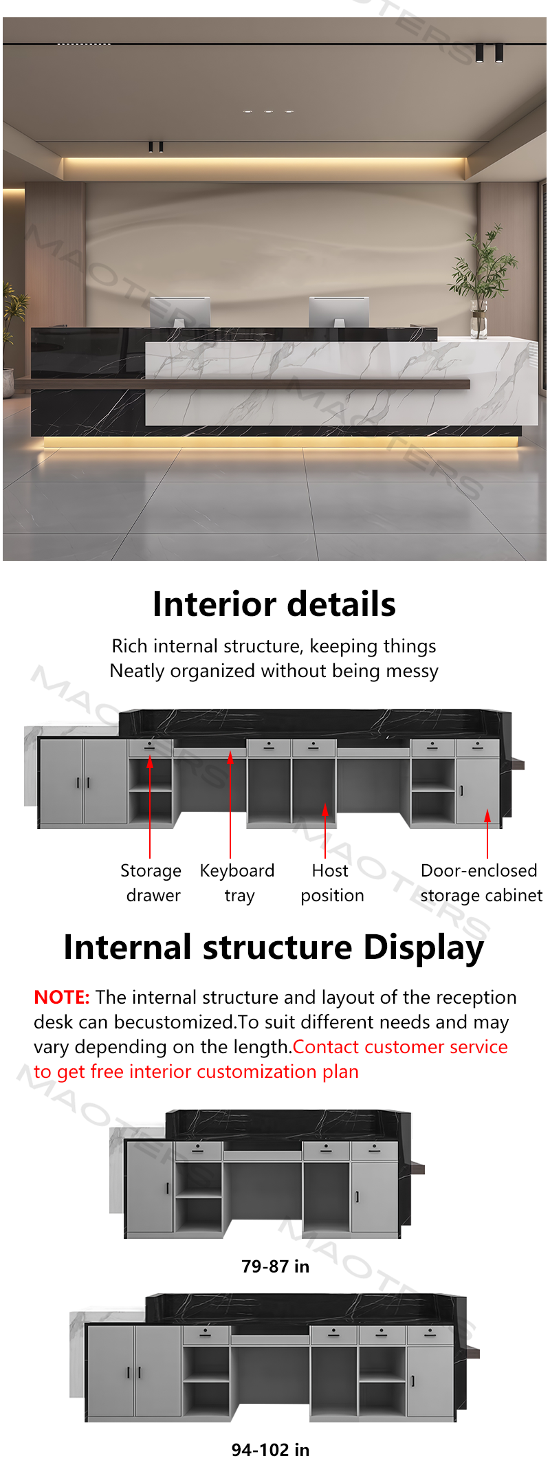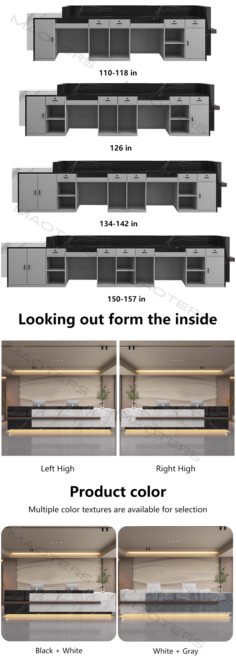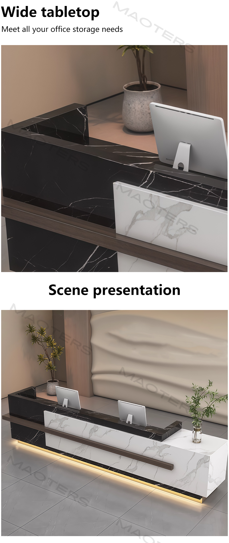 Balancing timeless aesthetics with the practical needs of modern commerce, this reception desk series innovatively blends luxurious natural marble with high-performance engineered stone, providing clients with a solution that combines artistry with exceptional practicality.