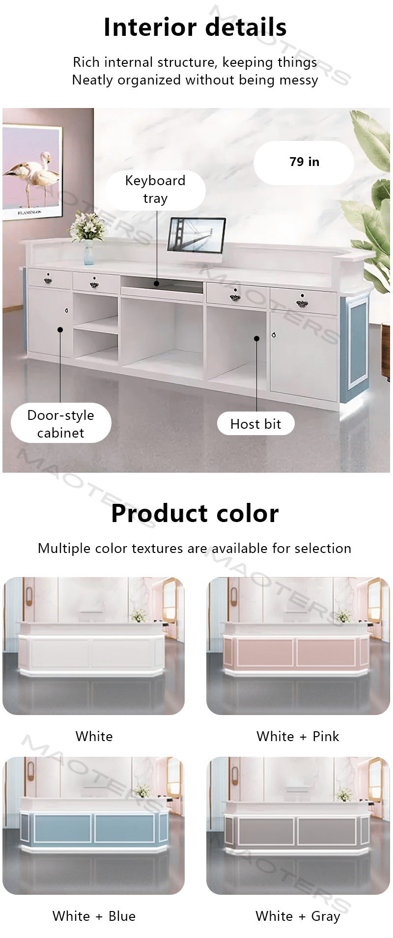 - Customizable Options – Available in a variety of sizes, colors, and finishes, allowing you to personalize the desk to match your office or business’s interior style.