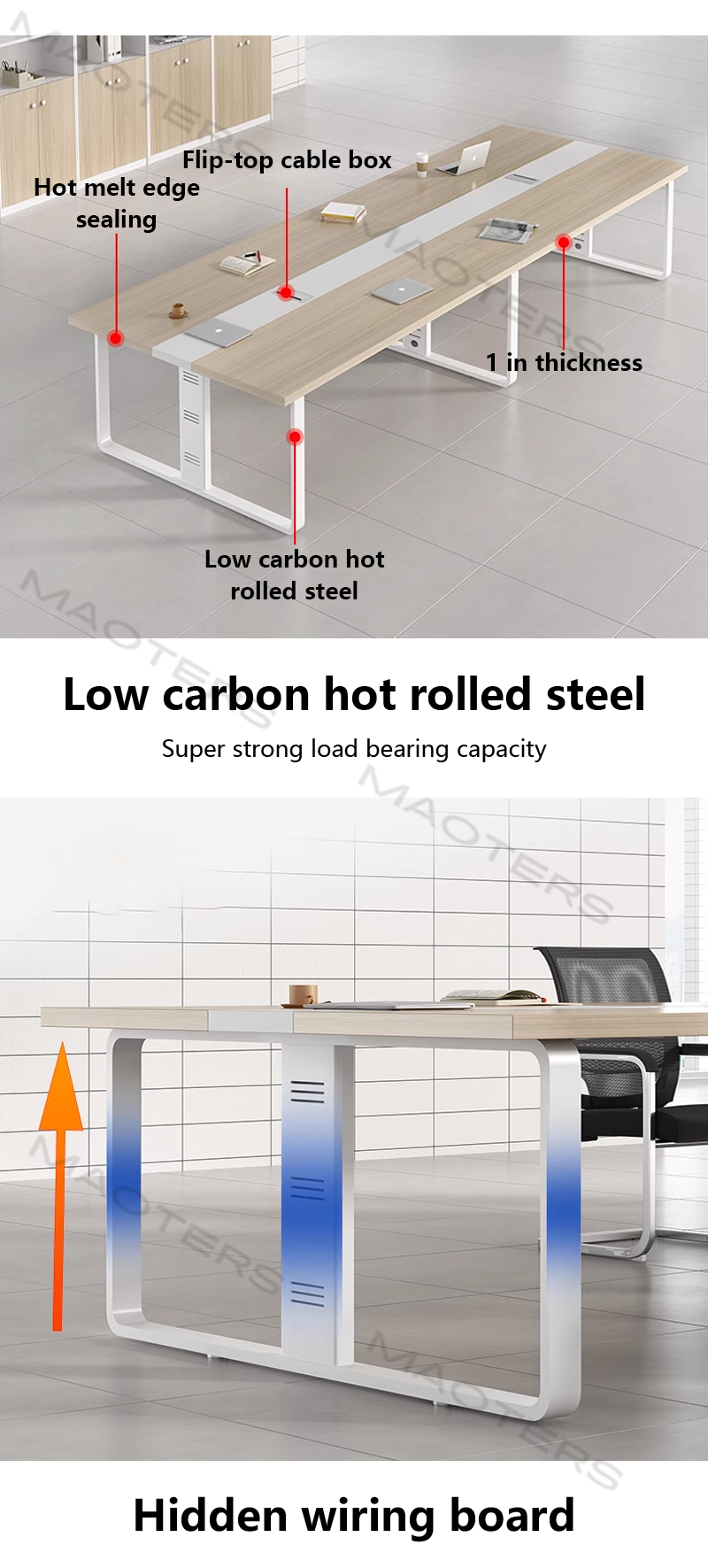 Stable structure, reliable support: Employing a thickened tabletop and reinforced legs, or an internal metal frame, ensures the table remains stable even at large sizes, providing stable support for various office equipment and items.