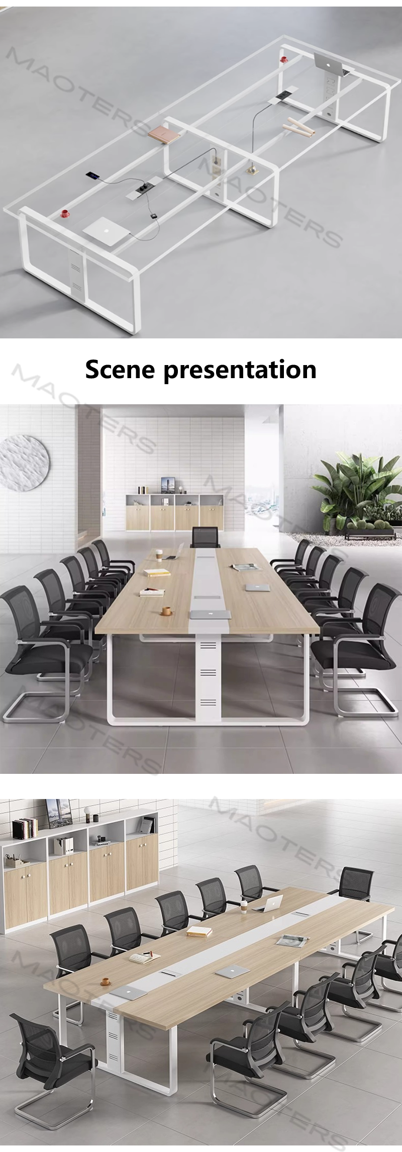 Classic rectangular design: Clean lines and sharp angles lend a sense of order and professionalism to the space. The well-organized desktop shape facilitates seating and document sharing, optimizing meeting flow and space utilization efficiency.
