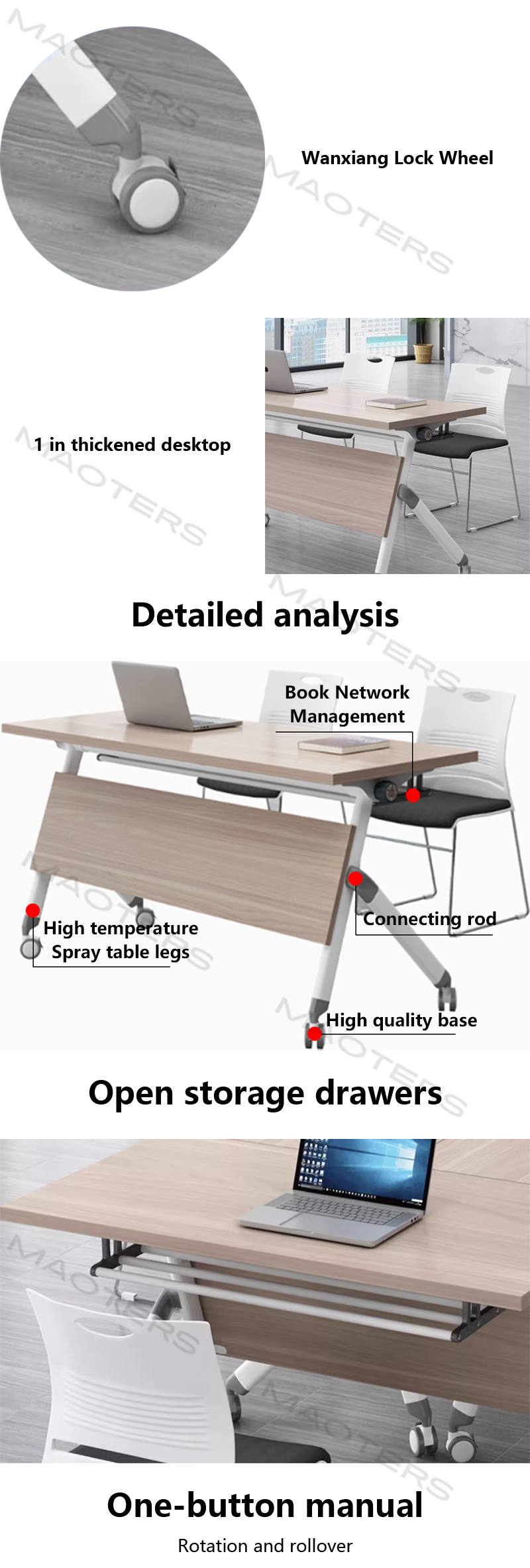 Human-centered details: rounded corner anti-collision design ensures safety; lightweight overall structure makes movement effortless; some models can be equipped with cable management holes and casters for more versatile functionality.