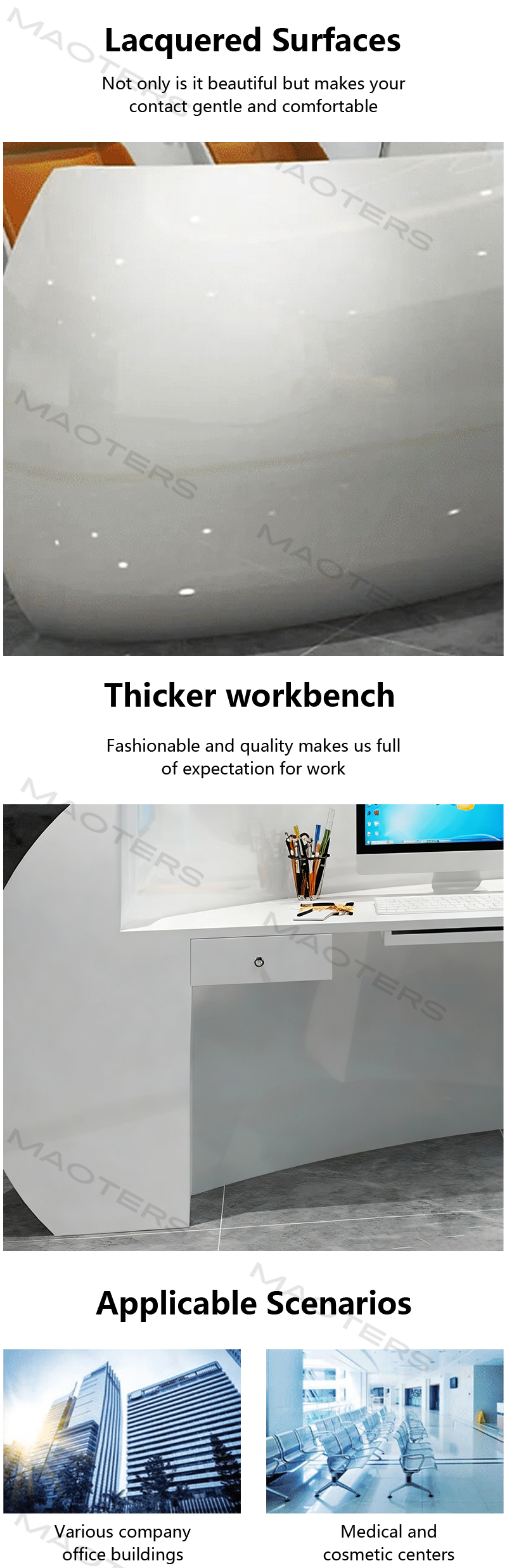 The front desk is made of thick material, with a simple and stylish design, very creative