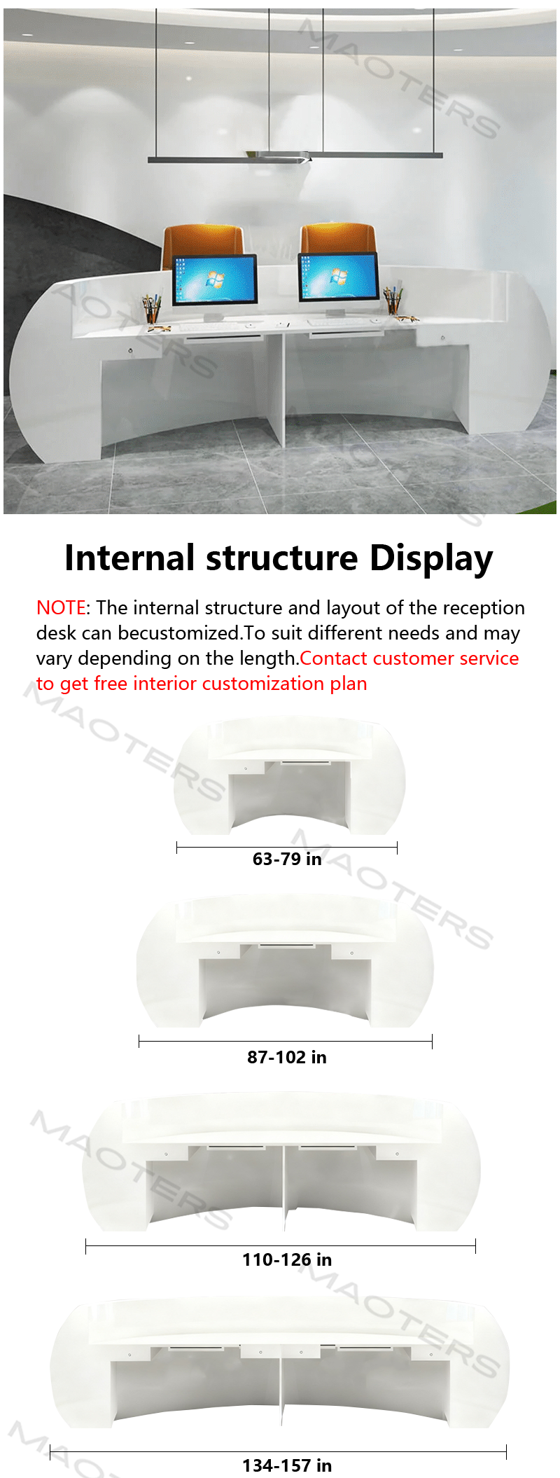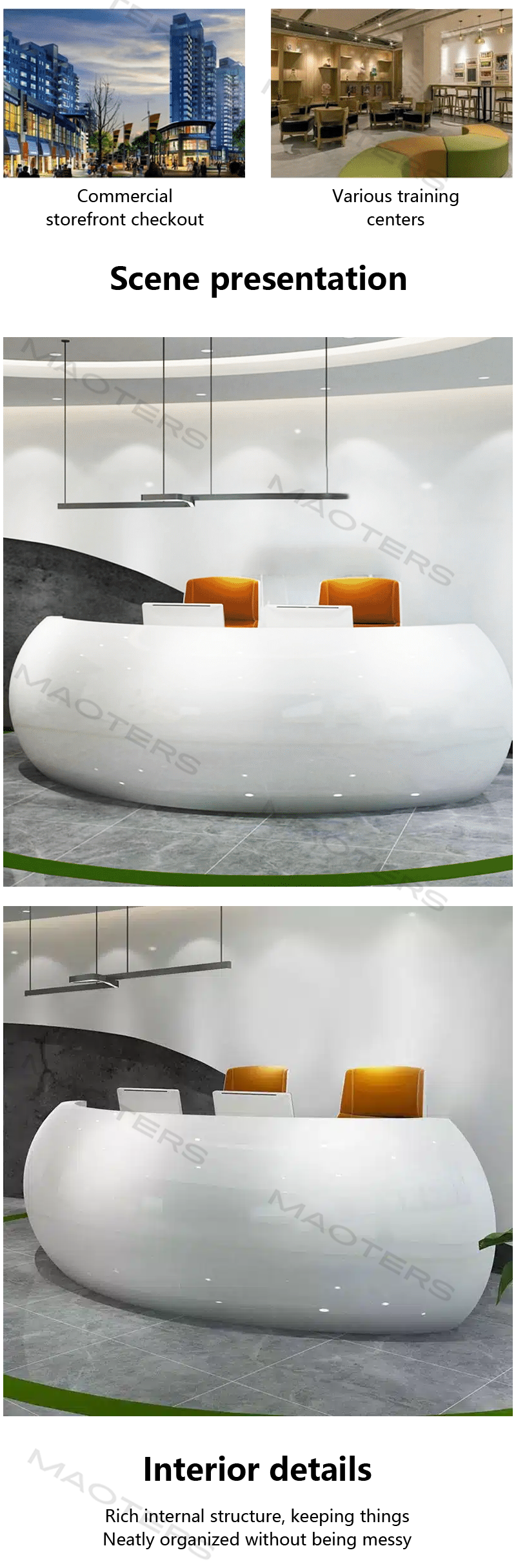 - Elegant Semicircular Design: The curved front creates a welcoming and open space, ideal for interaction and communication.