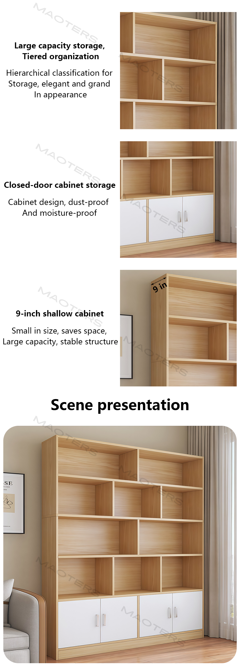 The cabinet comes in warm, natural wood tones or classic pure white, easily integrating into various décor styles. The carefully planned interior includes multiple adjustable shelves and a doorned storage area. Open shelves are perfect for displaying books, picture frames, or plants, while the closed doors conceal everyday items such as remote controls, gaming accessories, or household goods, instantly restoring a tidy and organized space.