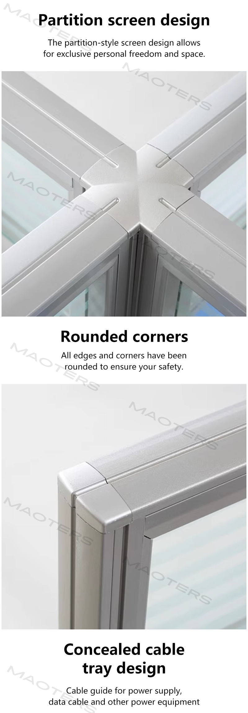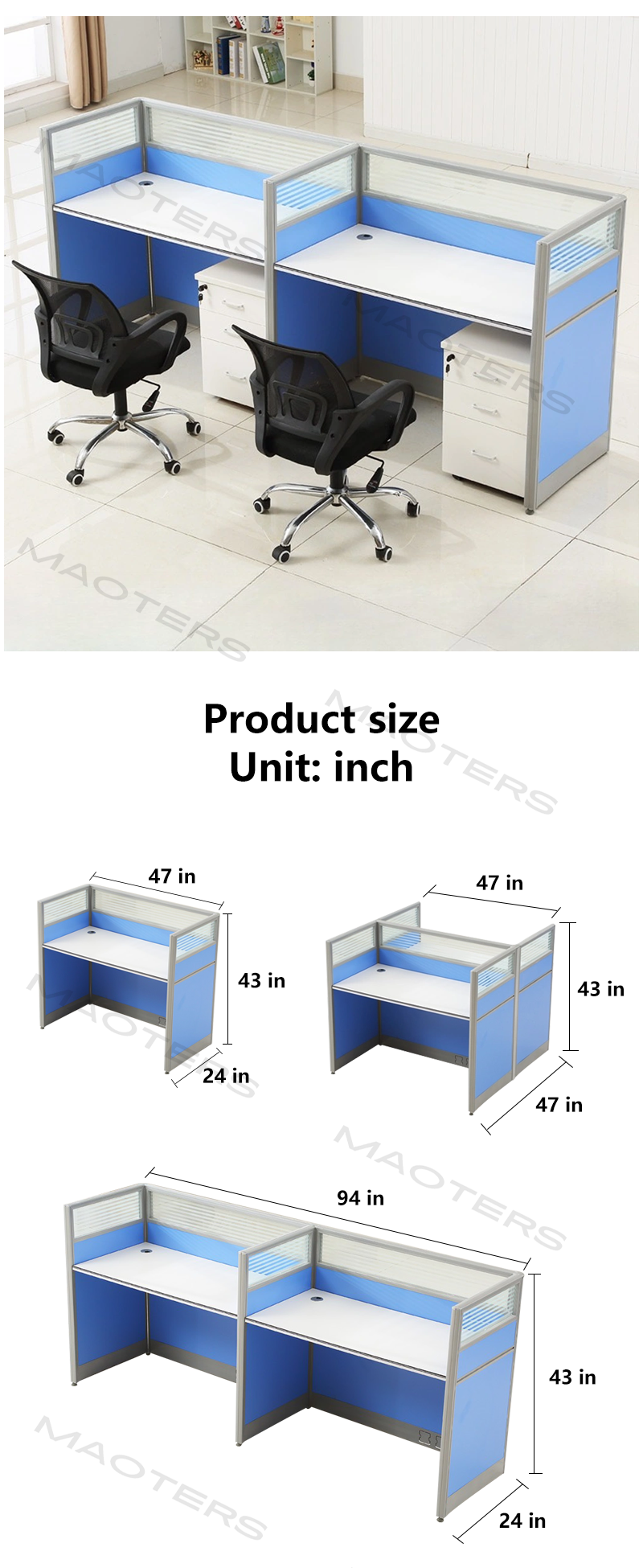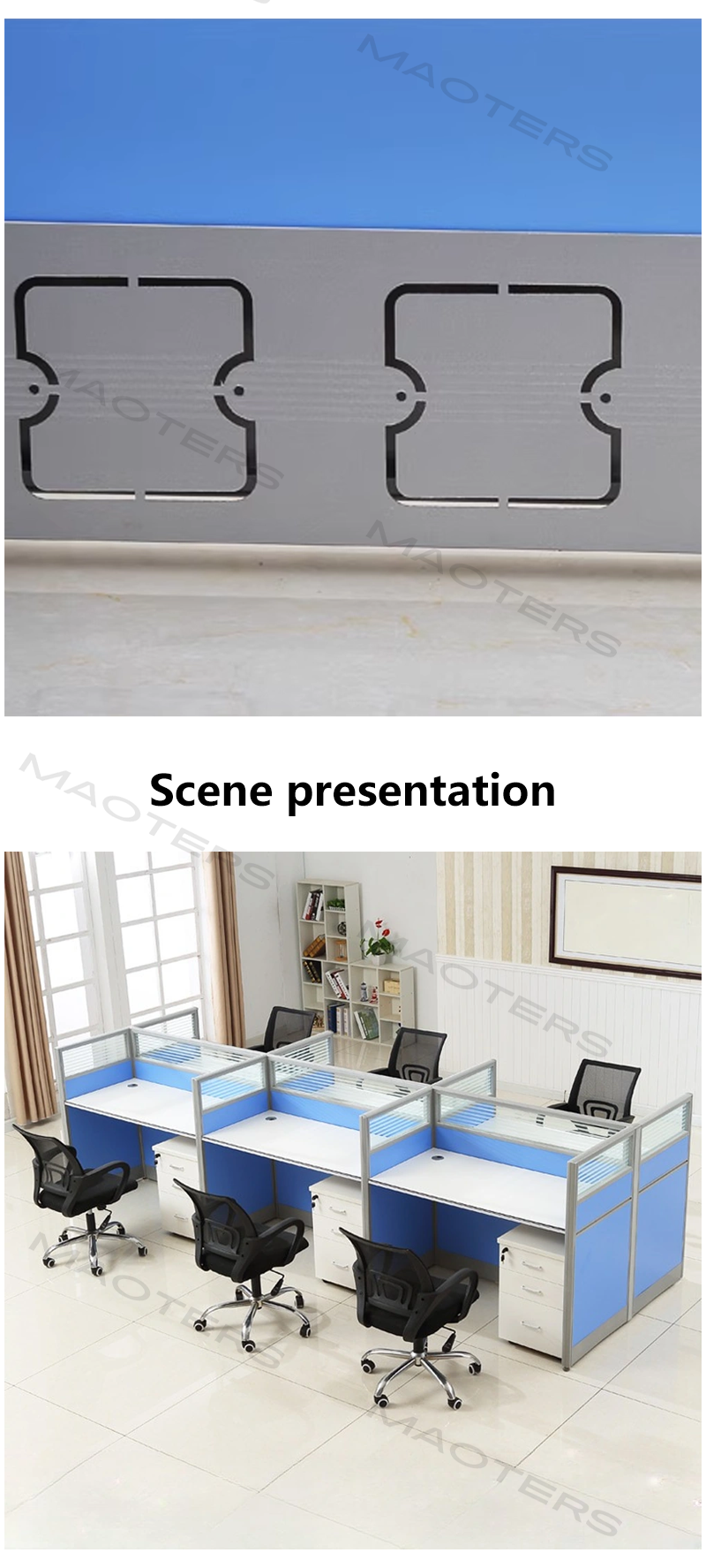 The four-seat configuration is ideal for multiple users, saving space while maintaining practicality. The table and chairs are made from high-quality, environmentally friendly materials with a smooth, easy-to-clean surface. The metal frame is reinforced for long-lasting durability. The overall design is simple yet stylish, easily blending into various interior styles and creating a neat and organized environment.