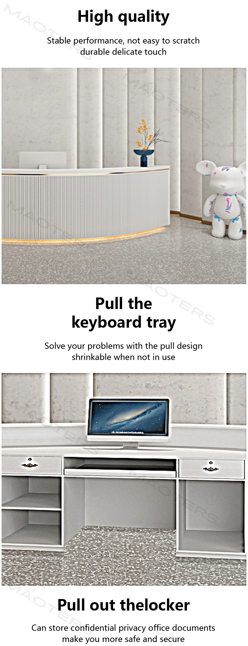 The Simple Modern Round Bar Cashier Table is a sleek and stylish solution designed for modern spaces, including bars, cafes, and retail environments. With its unique round design, this cashier table combines form and function, creating a welcoming, efficient point of sale. The compact and minimalist style provides an uncluttered workspace, while the high-quality materials ensure durability and easy maintenance. Perfect for businesses looking to optimize space without sacrificing style, this table can be customized in size, color, and material to suit your specific needs and aesthetic preferences.