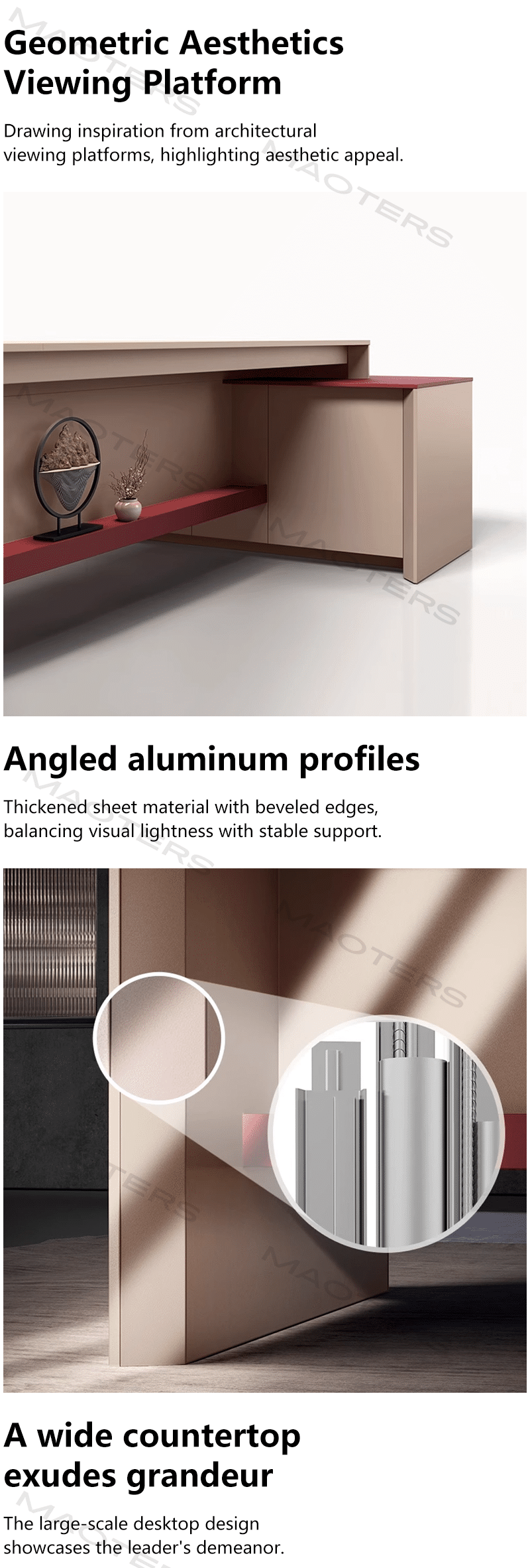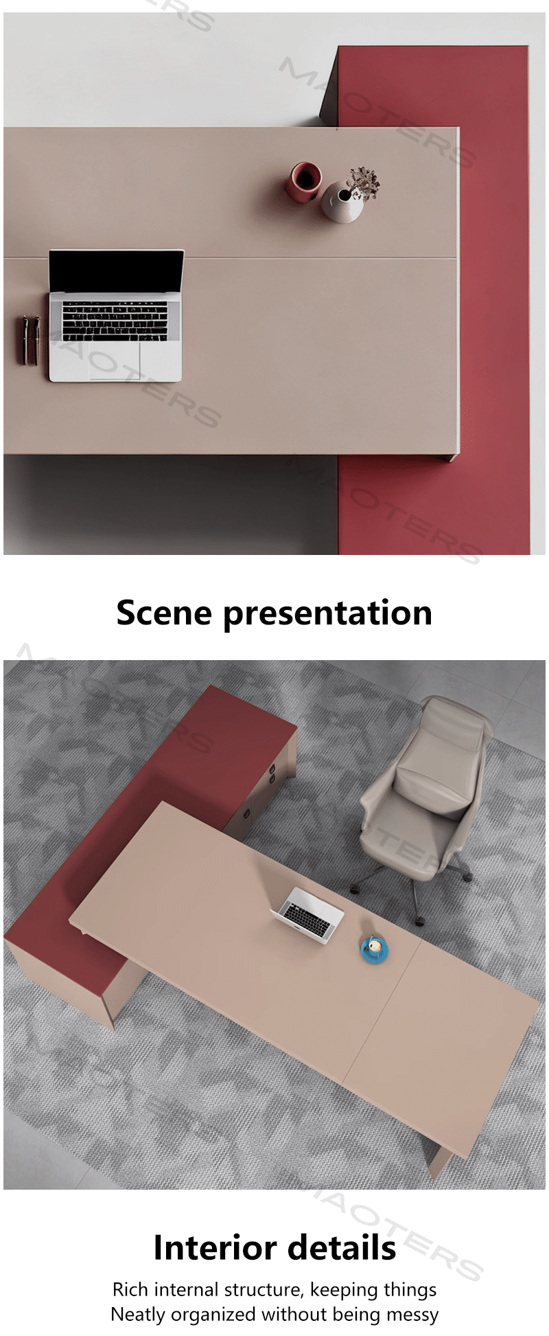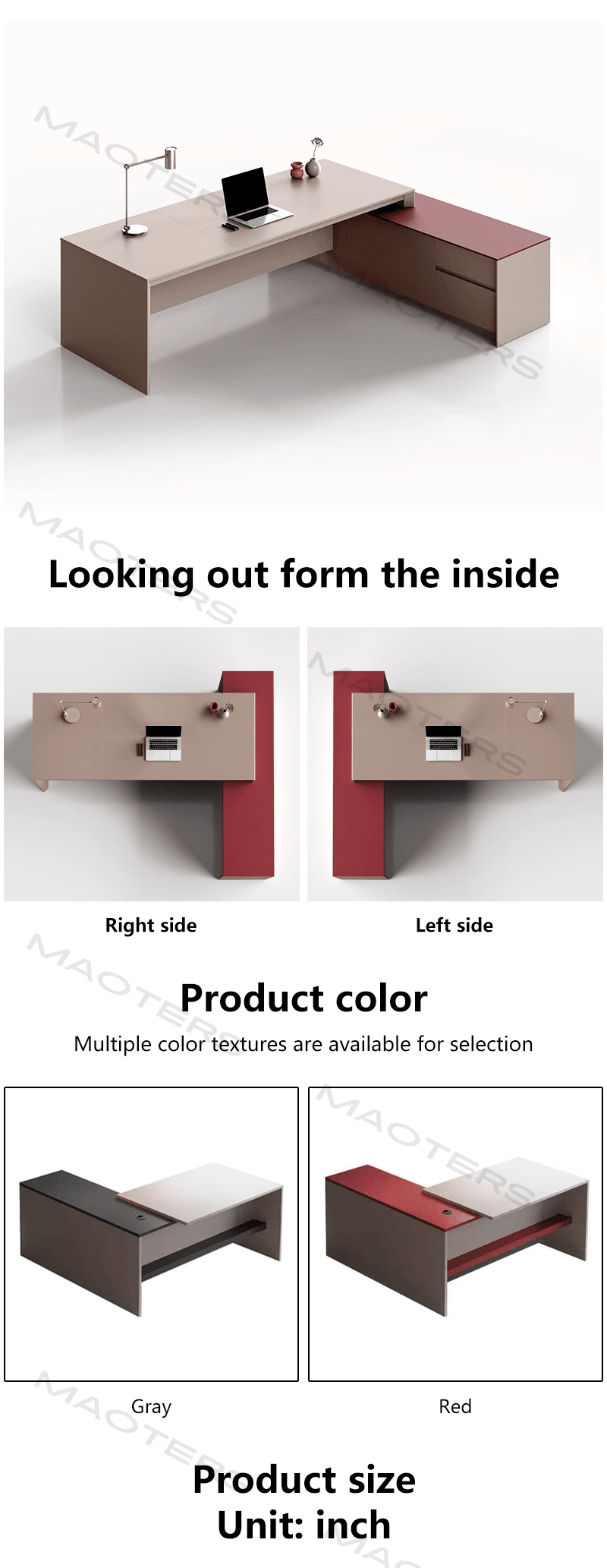 The spacious desktop provides ample room for multitasking, while sturdy construction ensures long-lasting durability. Thoughtful details, such as integrated cable management and smooth-gliding drawers, enhance productivity while maintaining a clutter-free aesthetic. Whether in a corporate setting or a modern home office, the Maoters Executive Desk delivers timeless elegance and professional performance.