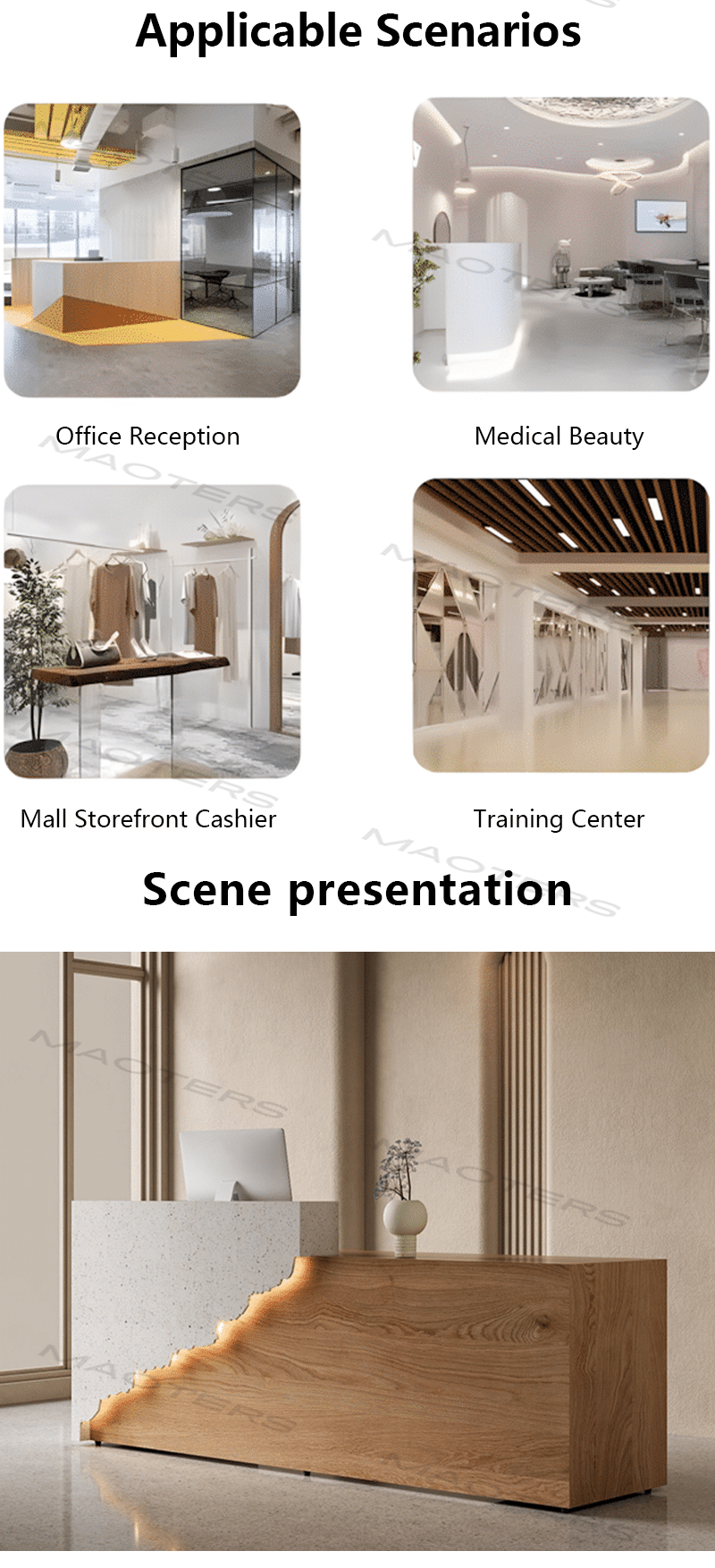 The Solid Wood Corporate Office Reception Desk offers a professional and timeless solution for your business’s entrance. Crafted from high-quality solid wood, this desk exudes sophistication and durability, making it perfect for corporate offices, law firms, and executive spaces. Its spacious surface provides ample room for managing customer interactions and daily tasks, while the elegant wood finish adds a touch of warmth and professionalism to your reception area. Designed to accommodate high-traffic environments, this desk combines style with functionality. Customizable in size, color, and material to match your office’s aesthetic and operational needs.