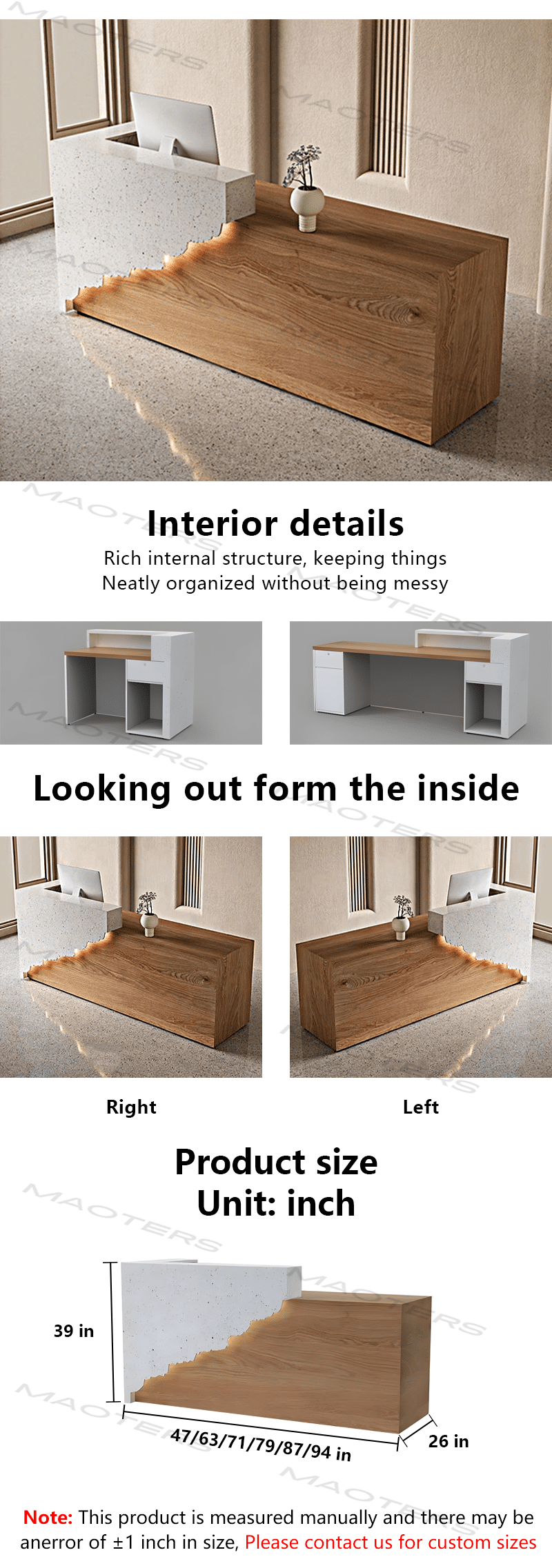 I'm thrilled with this reception desk. It balances style and functionality perfectly. Looks elegant, yet has enough space to work and store all essentials.