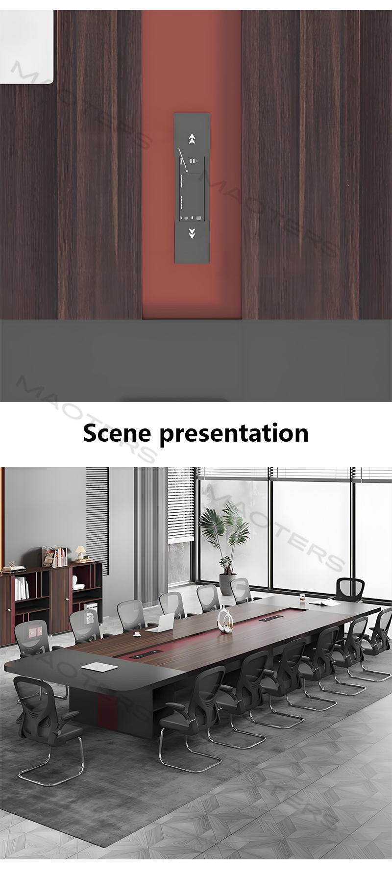 Layout Facilitating Organized Collaboration: The large rectangular tabletop clearly defines the direction and focus of the meeting, maintaining a clear organizational structure and smooth speaking order even with large groups, ensuring efficient large-scale meetings.