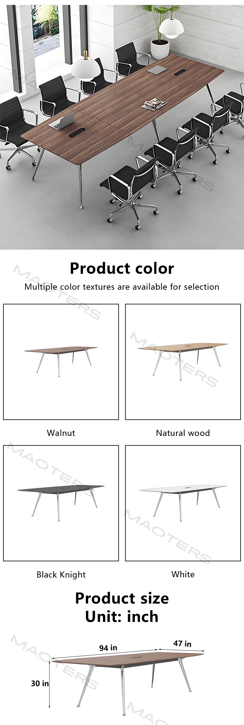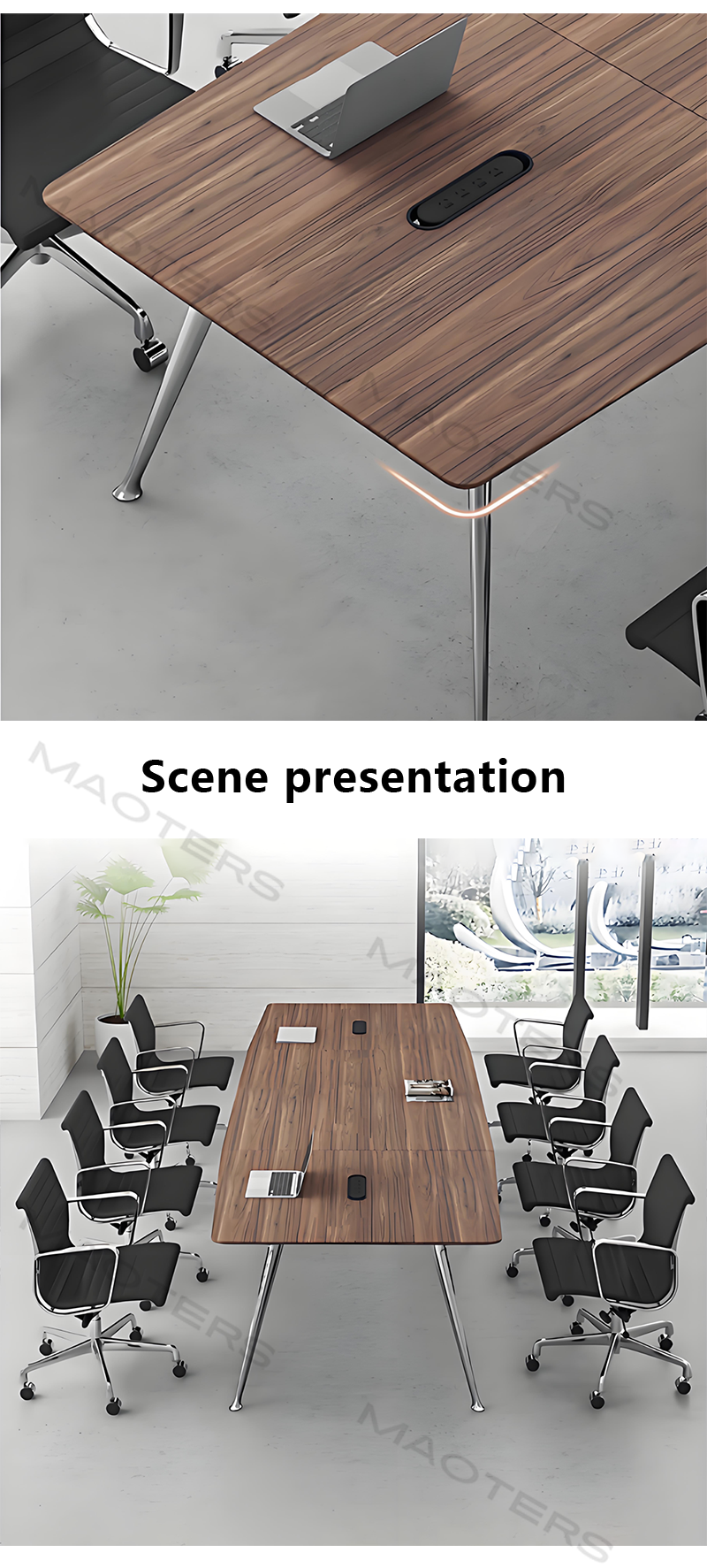 Flexible space adaptation: We offer a variety of sizes, from compact 8-person tables to large 20-person boardroom tables, and can customize designs to suit your meeting room layout, maximizing the use of every inch of your commercial real estate space.