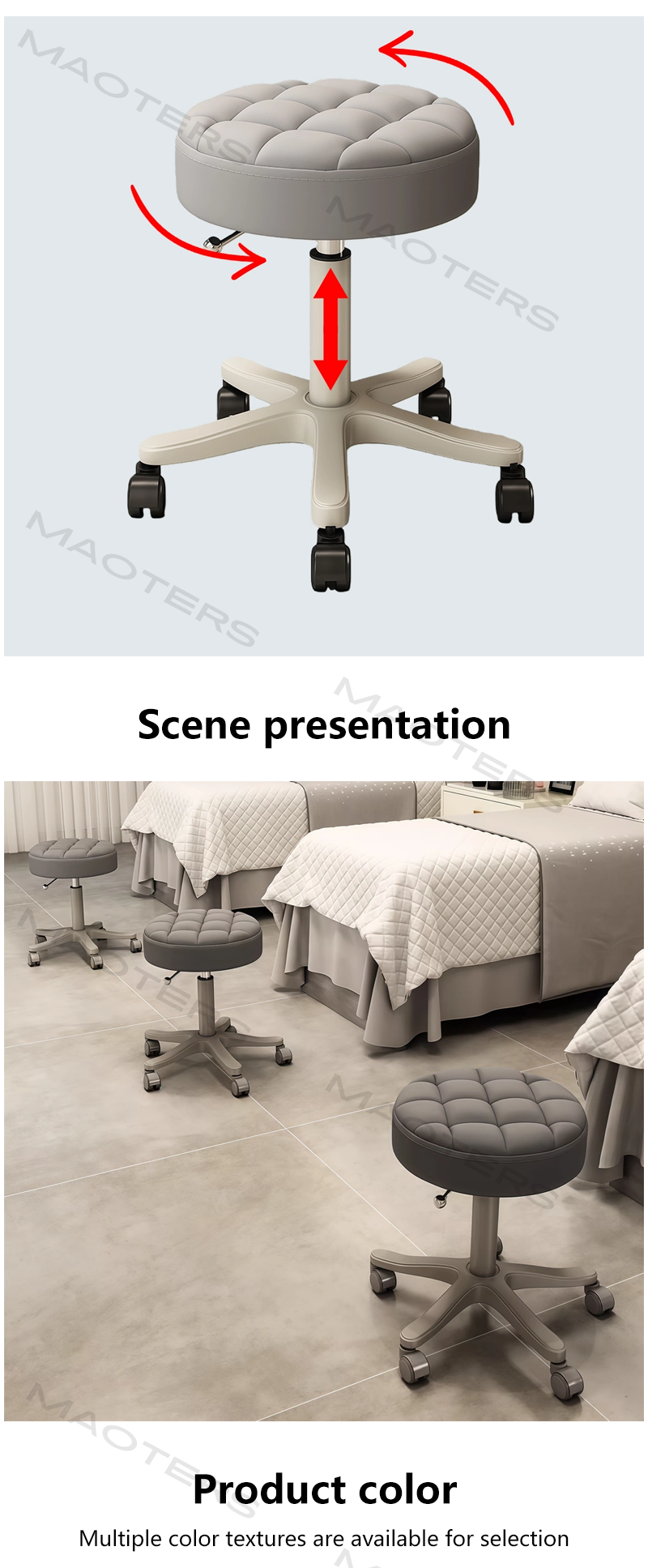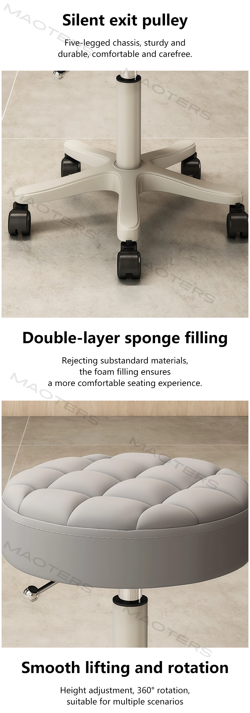 Stable and Secure Support: A reinforced metal frame structure, paired with non-slip feet or silent casters, ensures stable seating while protecting the floor surface.
