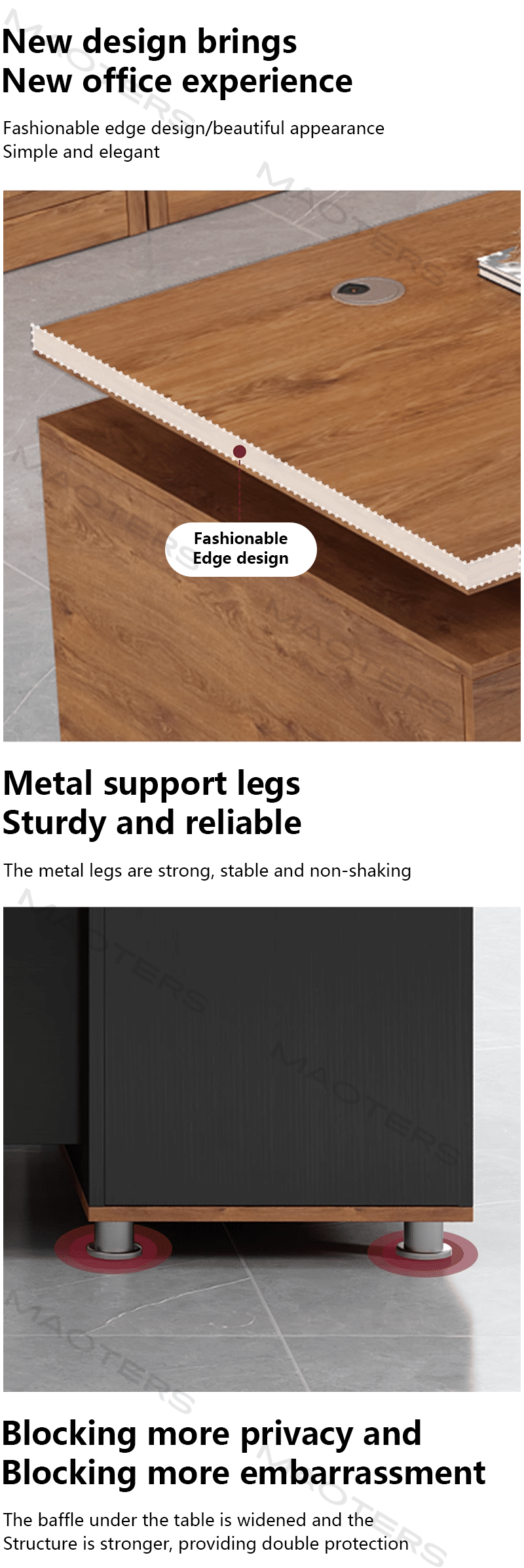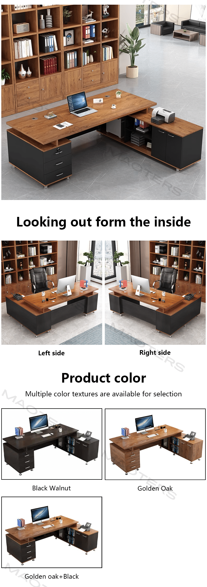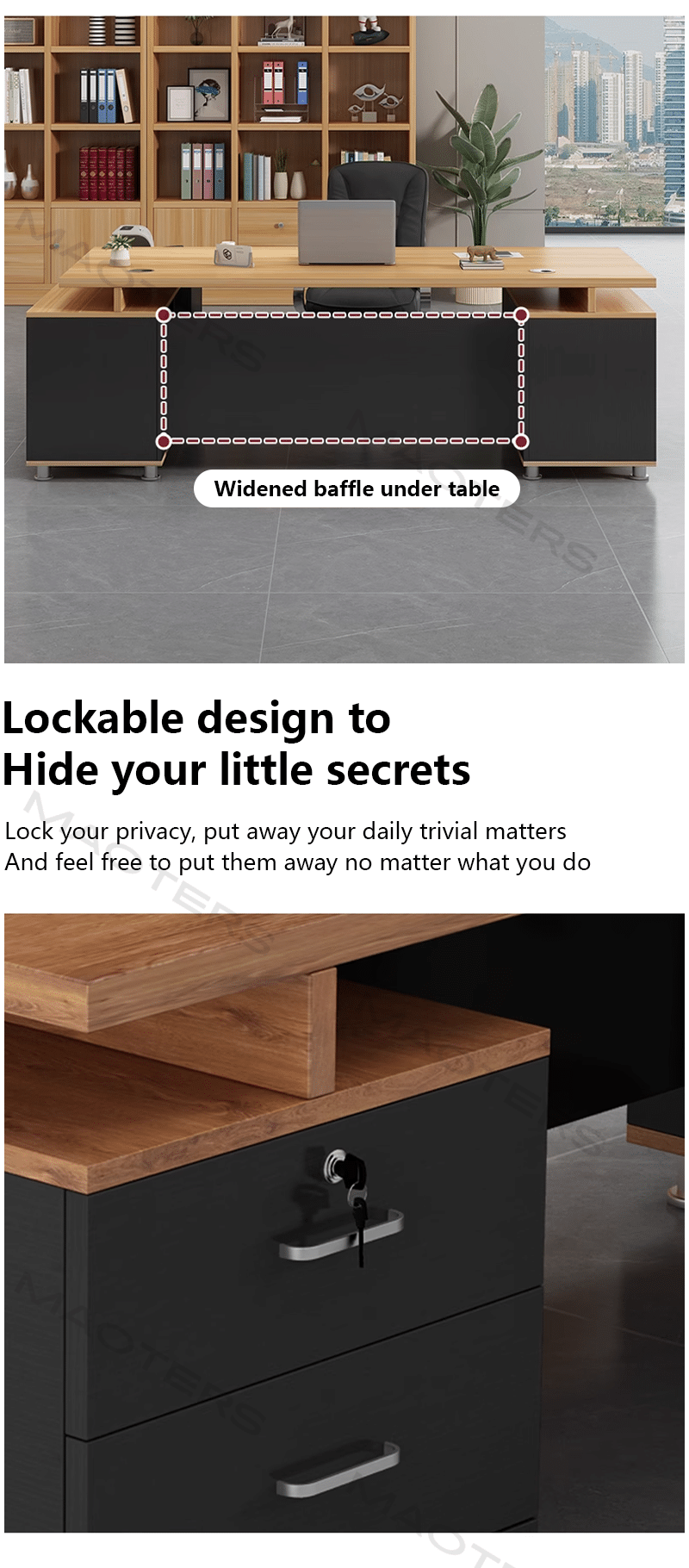 Available in refined finishes such as matte black, walnut, or white, the Maoters Executive Desk seamlessly blends into contemporary, industrial, or minimalist office settings. Thoughtful details like built-in cable management and optional storage add-ons enhance functionality, keeping your workspace organized and efficient.