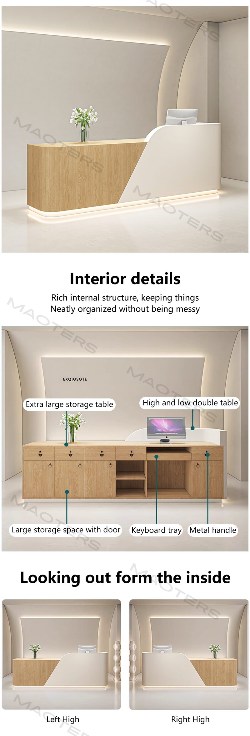 In the business world, first impressions matter. Our reception desks, cash registers, and front desks are more than just furniture—they’re a physical extension of your brand, the starting point for the customer experience, and the foundation for your team’s efficient work.We offer a comprehensive range of solutions to meet the unique needs of every commercial space:Luxury Reception Desks: Elegant and impressive, they create a welcoming and prestigious experience for visitors and instantly enhance your corporate image.Efficient Cash Registers: Rugged and functional, with integrated cable management and storage, they ensure a smooth and secure transaction process.Modern Reception Desks: Minimalist and flexible, they provide a comfortable, uncluttered work environment for administrative staff and optimize space utilization.Our Core Advantages:Superior Quality: We utilize premium materials, durable finishes, and high-performance hardware to ensure long-lasting durability.Functional Design: Built-in cable management, spacious storage drawers, and lockable cabinets keep countertops tidy and secure.Customizable: Available in a variety of sizes, layouts, colors, and materials to perfectly match your brand and space.Professional Support: Our team of experts provides one-stop service from consultation and design to installation.