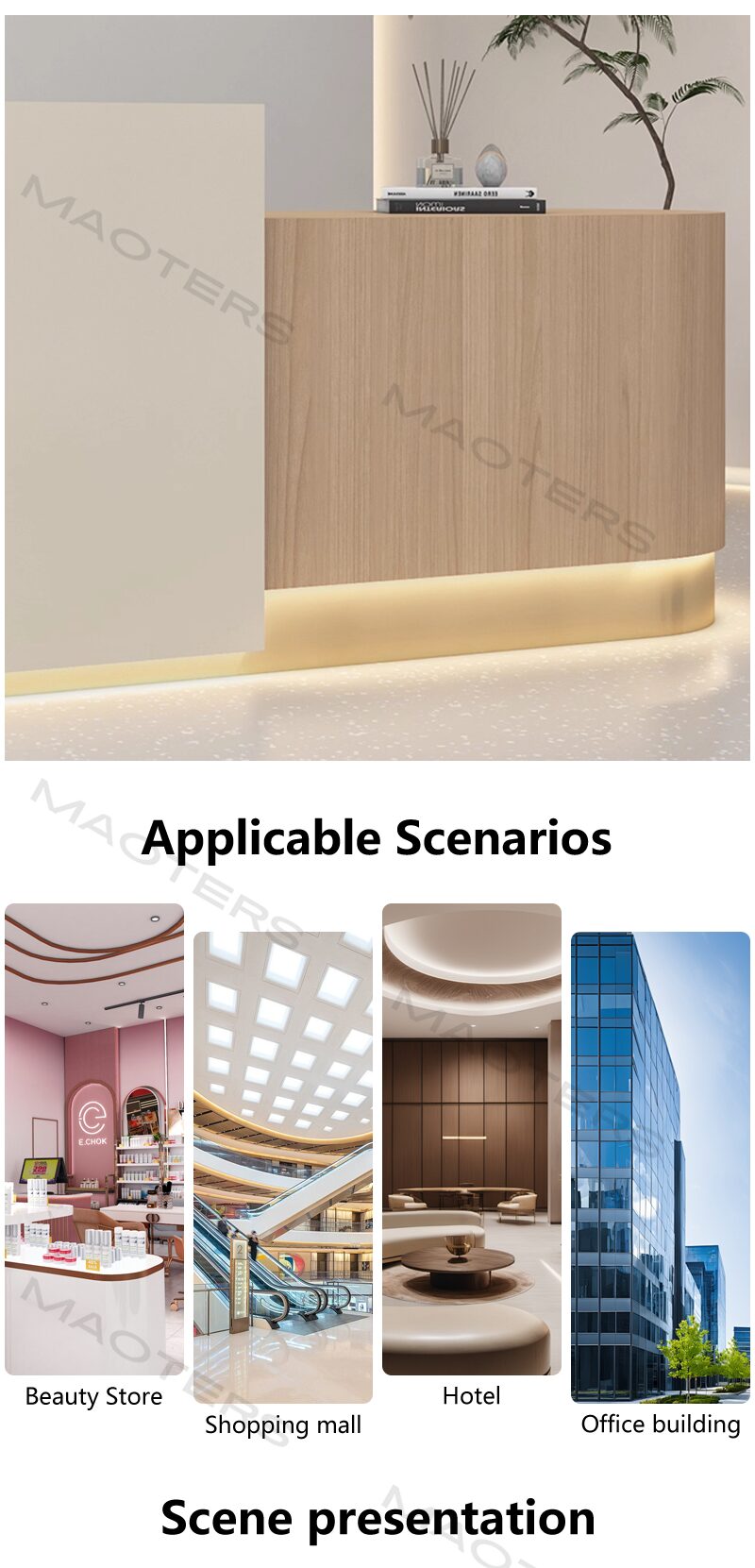 Space-Smart Design: Perfect for both large and intimate spaces, the curved footprint can maximize floor space, fit beautifully into corners, or create a stunning focal point in the center of your reception area.
