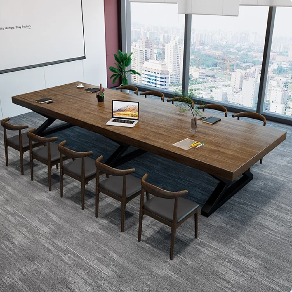Nordic Industrial-Style Solid Wood Large Conference Table