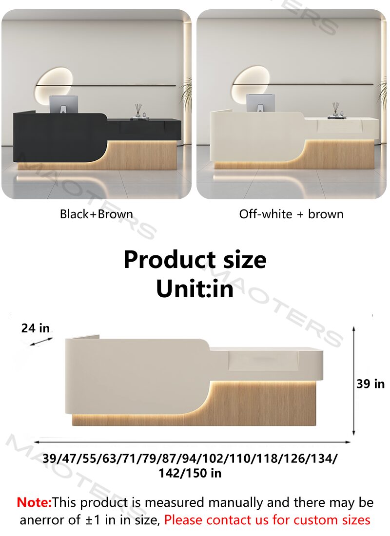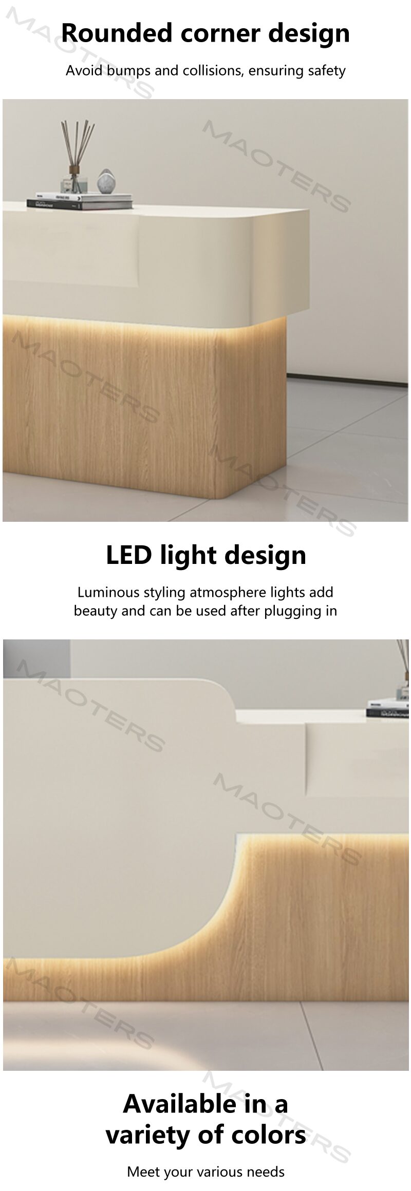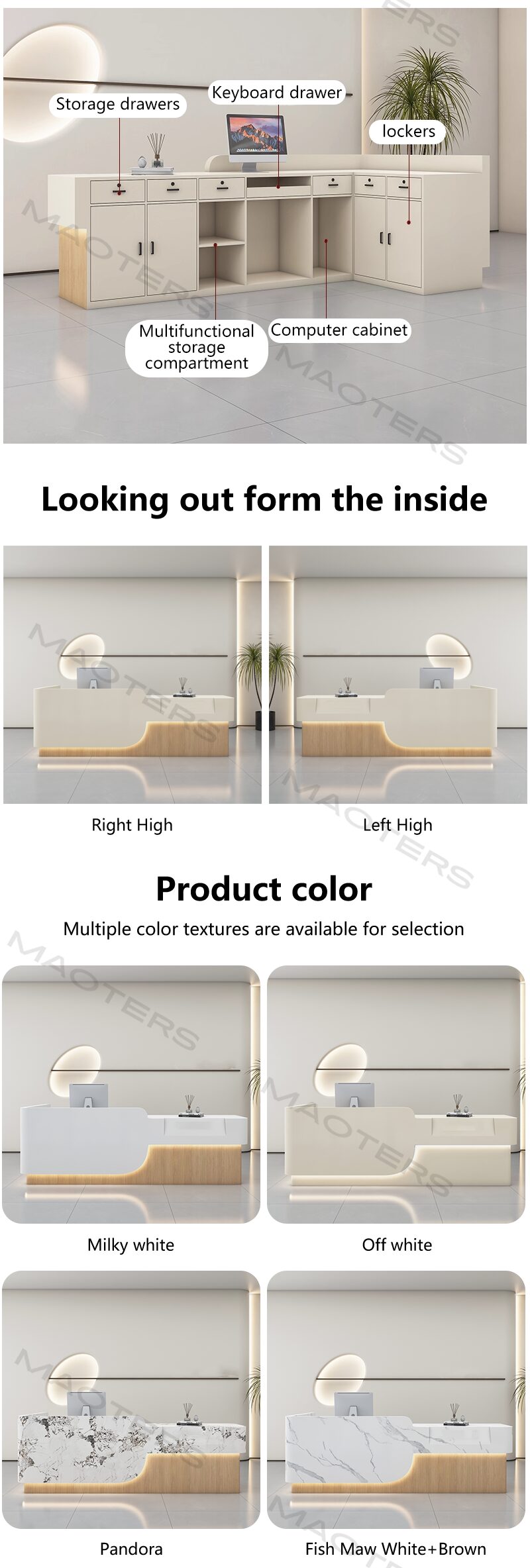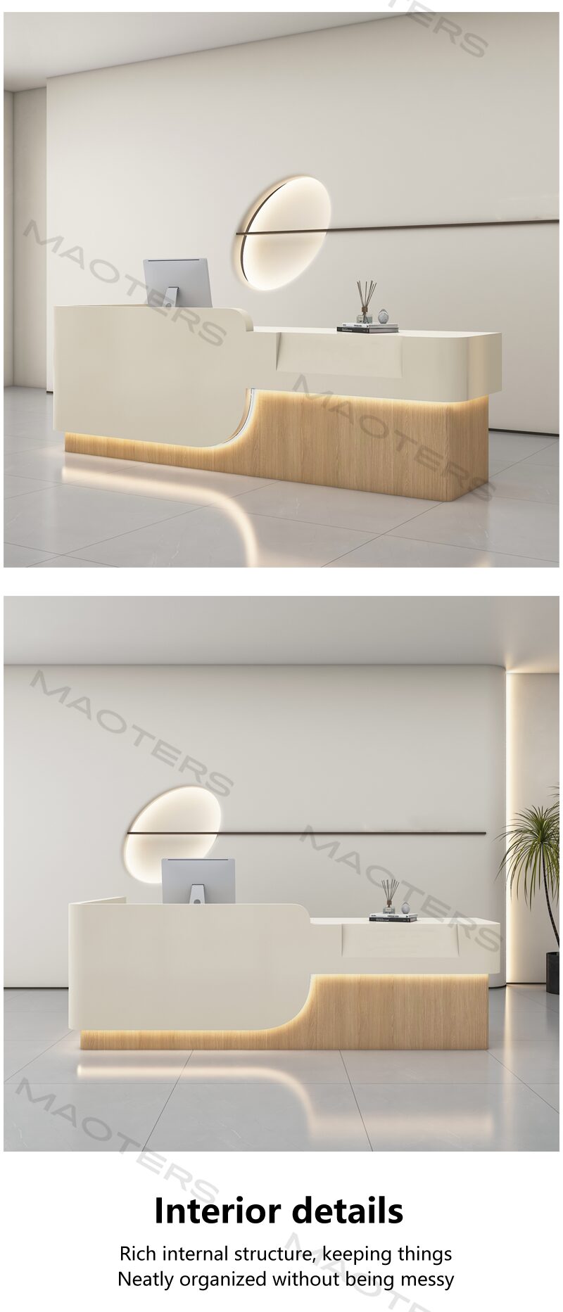 Our salon reception desks are not only the centerpiece of your business, but also a statement piece for your brand’s style and professionalism. With their captivating design, flowing curves, and refined details, they quietly signal to every client that they’re in for a luxurious and relaxing experience.We understand the unique demands of salon reception areas, so each design incorporates:Elegant Aesthetics: A polished, easy-to-clean finish, stylish metal hardware, or warm woodgrain accents create an artistic focal point that complements your salon’s design.Customer Interaction: Designed at the perfect height, receptionists can comfortably communicate with clients, book appointments, and elegantly display retail products to boost sales.Efficient Organization: A concealed cable management system, locking drawers, and organized shelves keep appointment books, products, POS terminals, and tools organized, ensuring the countertop remains pristine.Durable and Easy-to-Clean: The stain- and chemical-resistant surface easily withstands the daily wear and tear of a salon environment, including water spills.Investing in a professional salon reception desk will improve your operational efficiency and enhance the overall customer experience. Let us help you create a stunning and unforgettable facade.