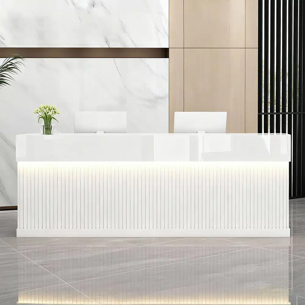 Curved Lacquer Reception Desk – Modern Hotel & Office Counte