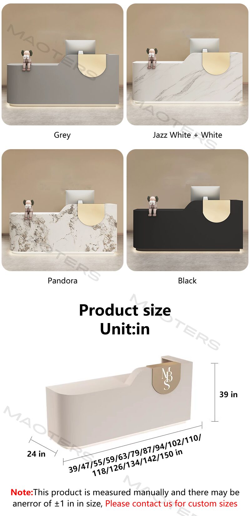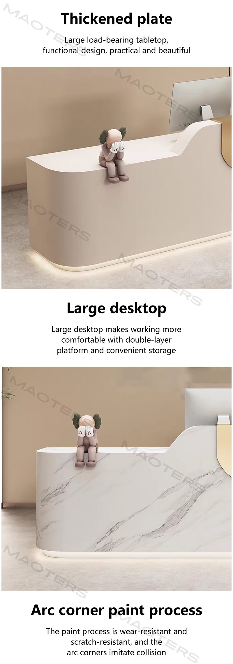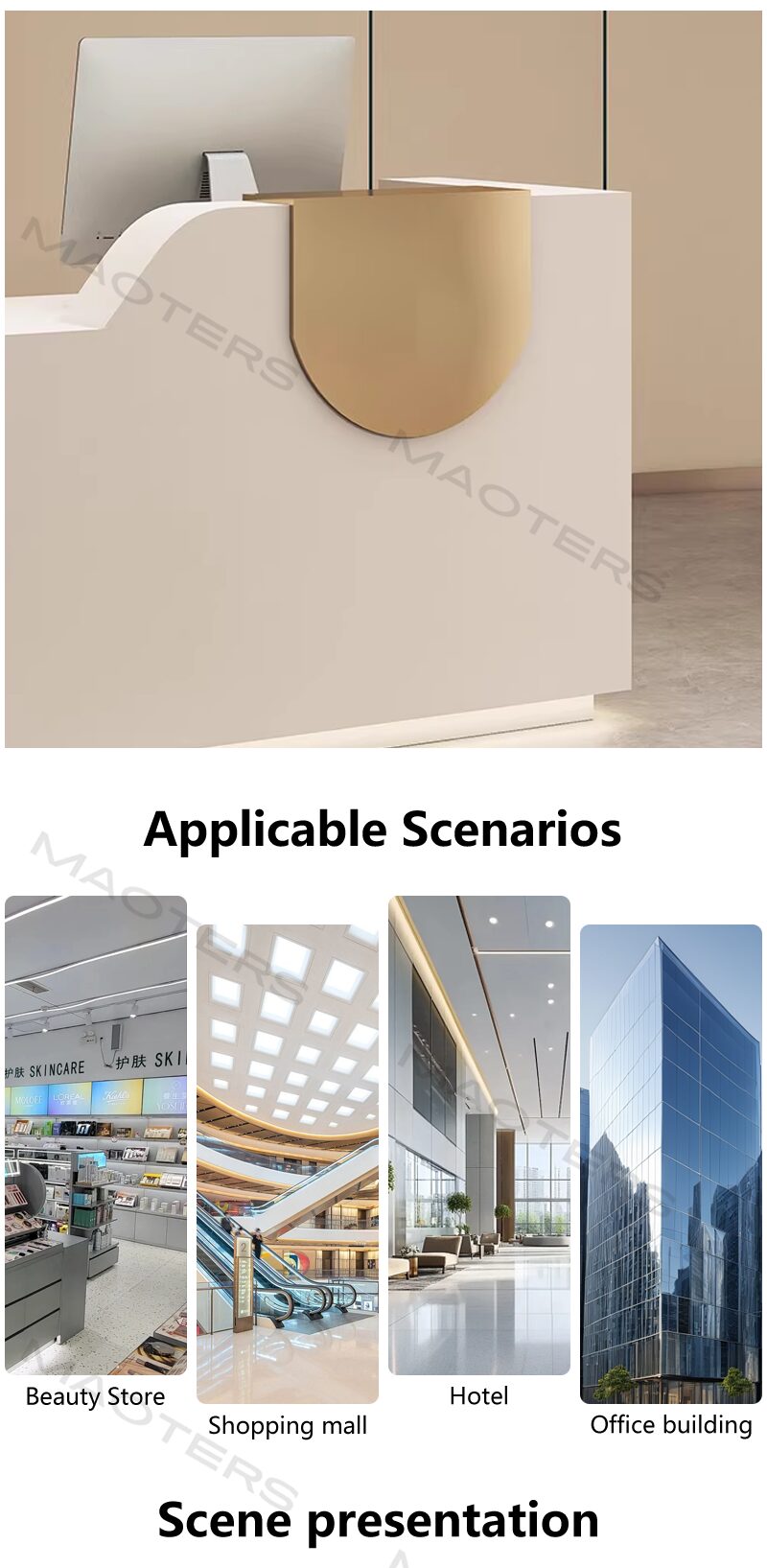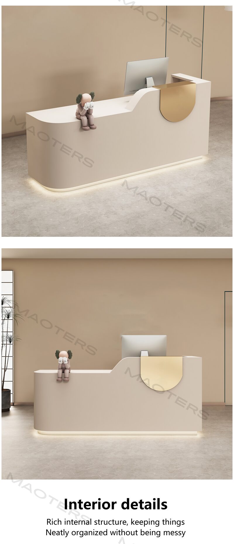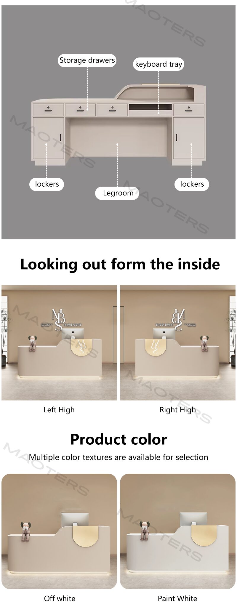 Our small reception desk, with its sleek form and warm design, creates a welcoming and comfortable first experience for every visitor.It’s the perfect complement to your space, neither obtrusive nor overcrowded, yet captivating with its refined details:Intimately Scaled Design: Eliminates the sense of distance often associated with larger reception desks, creating a more intimate and personal atmosphere for interaction.Exquisite Aesthetics: From gently rounded corners to elegant wood grain or bright finishes, every detail reflects your meticulous attention to detail.Practical Reception Functionality: Ample storage and concealed cable management keep receptionists organized and smiling.Perfectly suited for: counseling rooms, beauty salons, boutique hotel reception desks, creative studios, and entrances to reading areas. Let a small corner become the starting point for conveying your brand’s warmth.